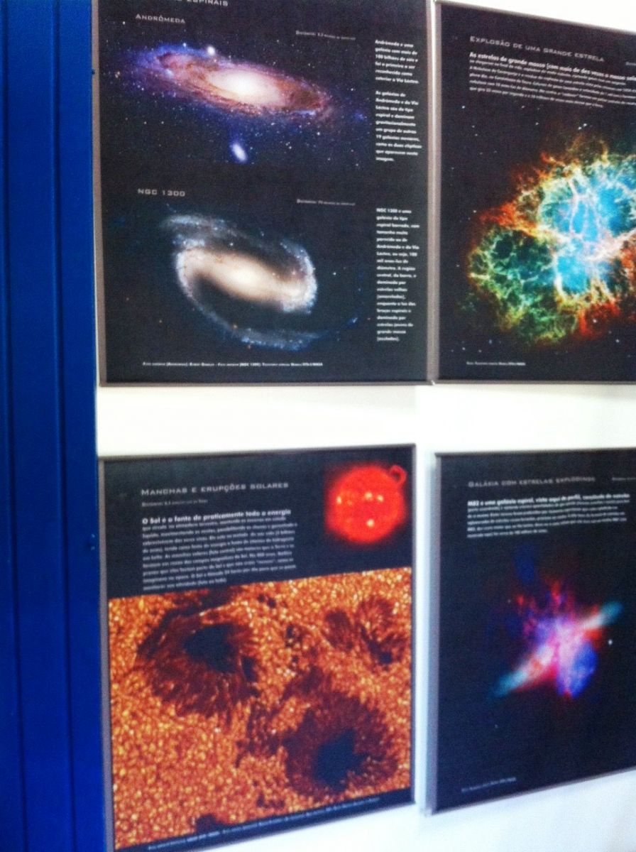 A exposição conta com fotografias tiradas pelo telescópio espacial da NASA; com um sistema solar em escala; com um relógio de sol; e com filmes de curta metragem sobre a 1ª viagem do homem à lua, a viagem do astronauta russo ao espaço, o sistema solar, galáxias, e missões da NASA.