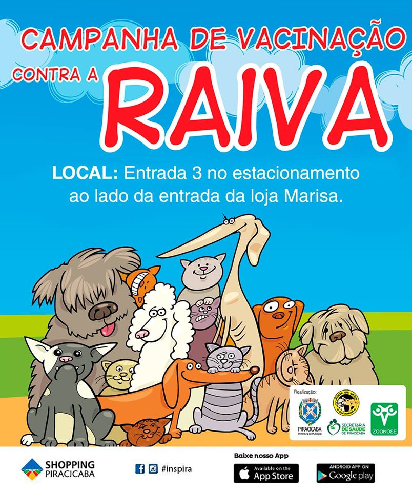 De acordo com a médica veterinária e diretora do CCZ, Eliane de Carvalho, além da programação já estabelecida, também haverá um posto extra no Shopping Piracicaba para atender os clientes que vão até o local com seus pets (cães e gatos). Dois profissionais do CCZ estarão no estacionamento, ao lado da entrada da loja Marisa, das 13h às 17h.