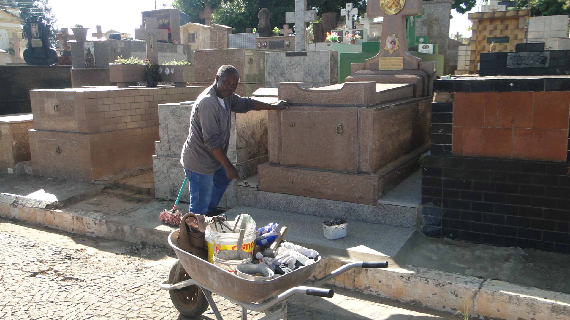 O pedreiro Magno Francisco de Souza está retocando as sepulturas para este final de semana