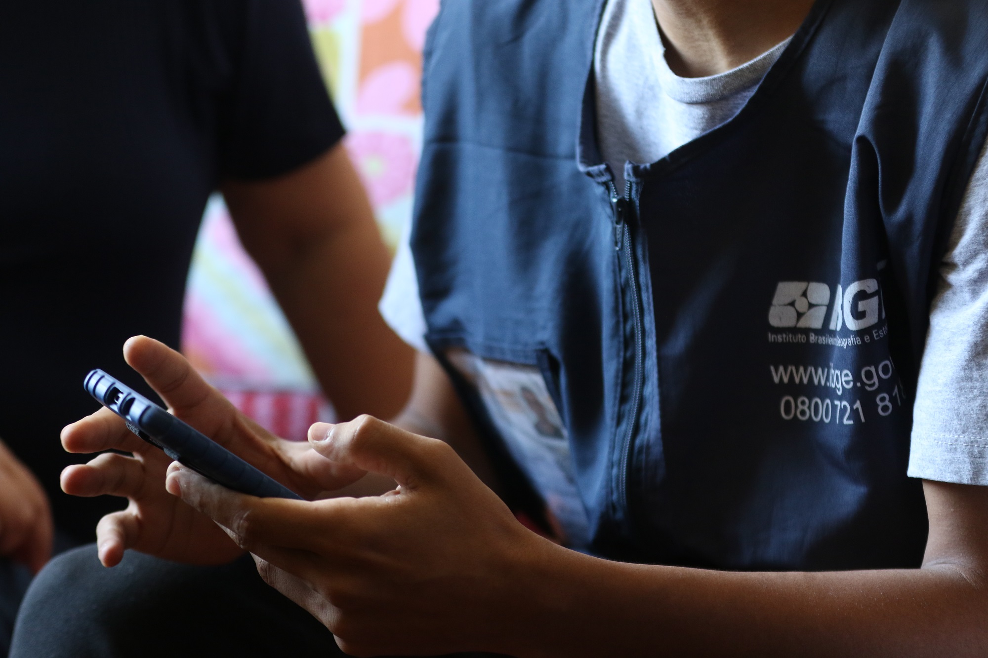 Recenseadores trabalham uniformizados com colete e boné, além de crachá com QR Code para confirmar a identidade