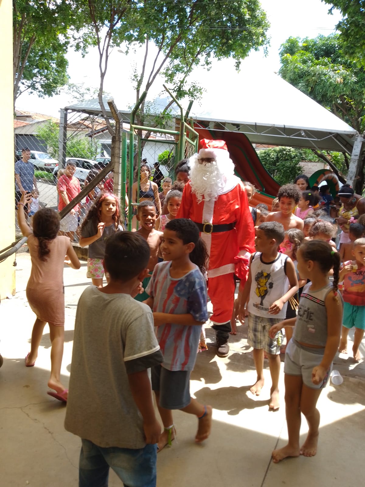 Na sequência, as crianças puderam brincar no pula-pula, receberam pintura de rosto e teve corte de cabelo, além de distribuição de algodão-doce e cachorro-quente. Logo, foi a vez da chegada do Papai Noel, às 14h, com distribuição de balas e muita danças com os Super-Heróis e robôs de LED.