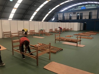 Equipes da Smads montaram as camas nesta sexta-feira (03)