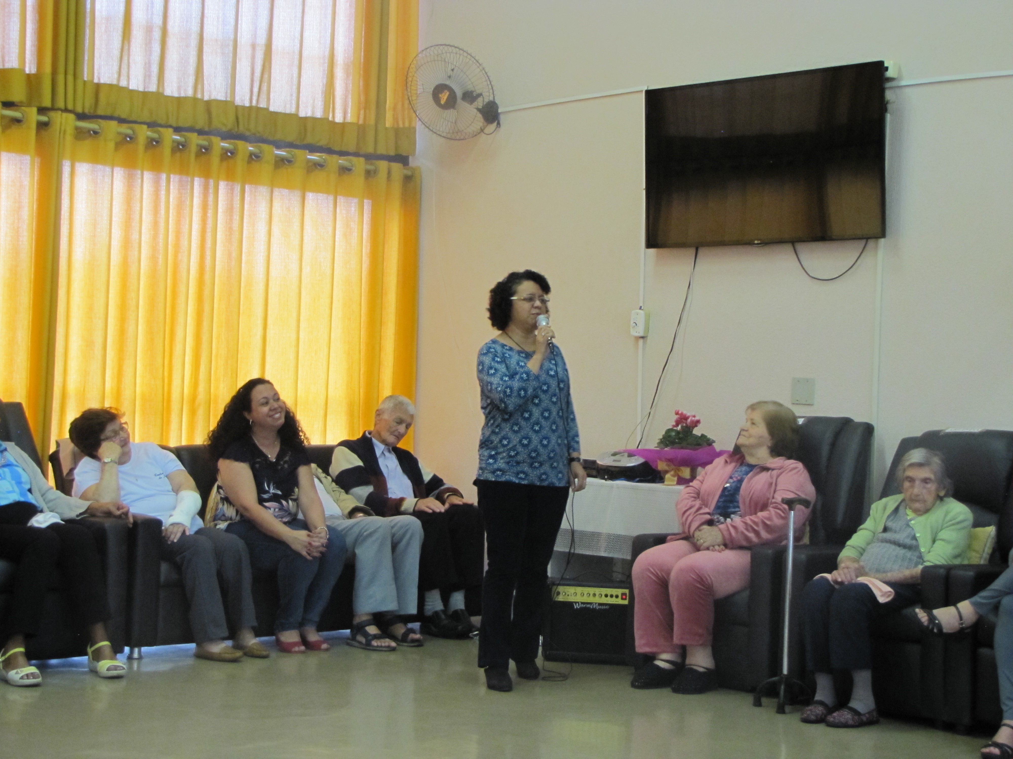 Irmã Ana Sílvia, da Afasmac, fez um percurso histórico de como foi iniciada a parceira para que a Organização Social assumisse a execução do serviço Centro Dia e como tem sido gratificante desenvolver o trabalho de cuidado com os idosos desde então.