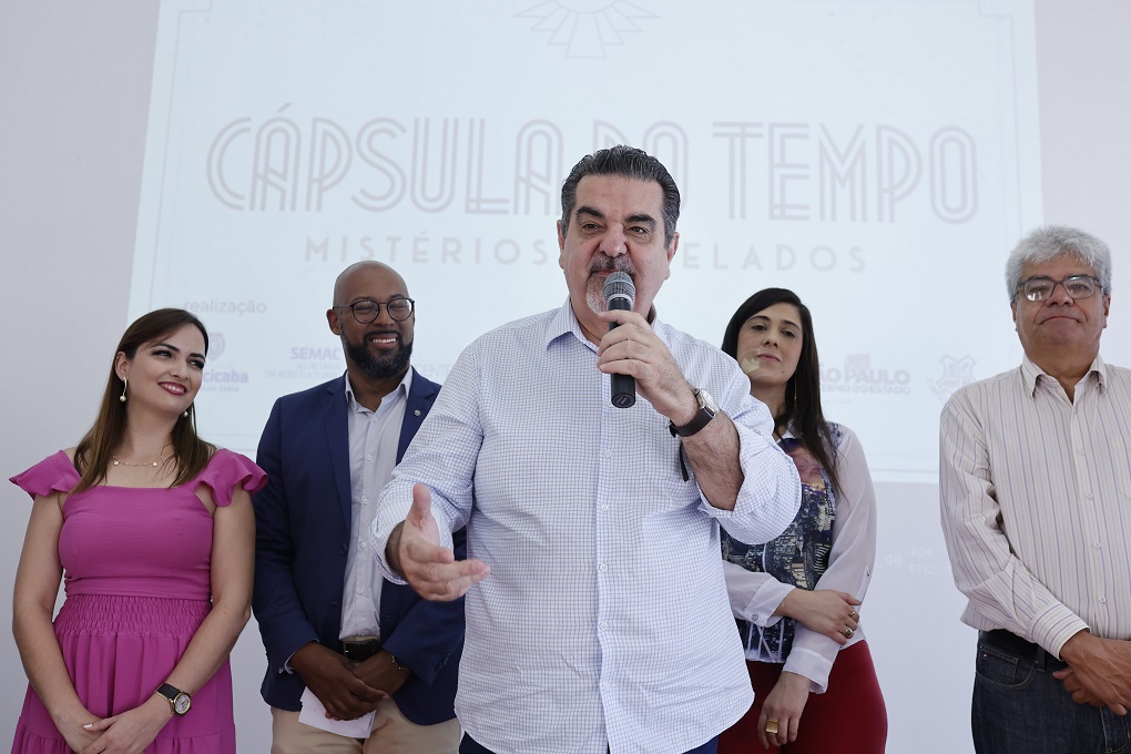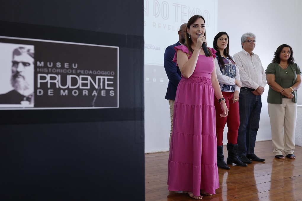 Na última terça-feira, 15/11, feriado da Proclamação da República, aconteceu no Museu Prudente de Moraes a abertura da Exposição Cápsula do Tempo – Mistérios Revelados, com itens encontrados na cápsula do tempo da Escola Estadual Sud Mennucci. A mostra é gratuita e ficará disponível para visitação até o dia 28/01. A solenidade foi uma parceria entre o Museu Prudente de Moraes, ligado à Prefeitura de Piracicaba por meio da Secretaria Municipal da Ação Cultural (Semac), a Câmara Municipal de Piracicaba e a Escola Estadual Sud Mennucci. O evento recebeu autoridades como a diretora do Museu, Érica Fernanda Stocco Frasson, a chefe de gabinete Juliana Baccarin, que representou o prefeito Luciano Almeida, o vice-presidente da Câmara, vereador Acácio Godoy, o dirigente regional de Ensino de Piracicaba, Fábio Augusto Negreiros, a diretora e ex-aluna do Sud Mennucci, Márcia Aparecida Vieira, e o secretário de Governo, também ex-aluno, Carlos Beltrame. "Foi uma grande emoção, como ex-estudante do Sud na década de 1970", disse Beltrame, que falou sobre uma carta escrita em 1922 por seu avô. "Passava pelo local onde estava a cápsula e não imaginava que havia ali dentro uma carta de 12 laudas do meu avô, de próprio punho, direcionada aos professores de história de 2022".