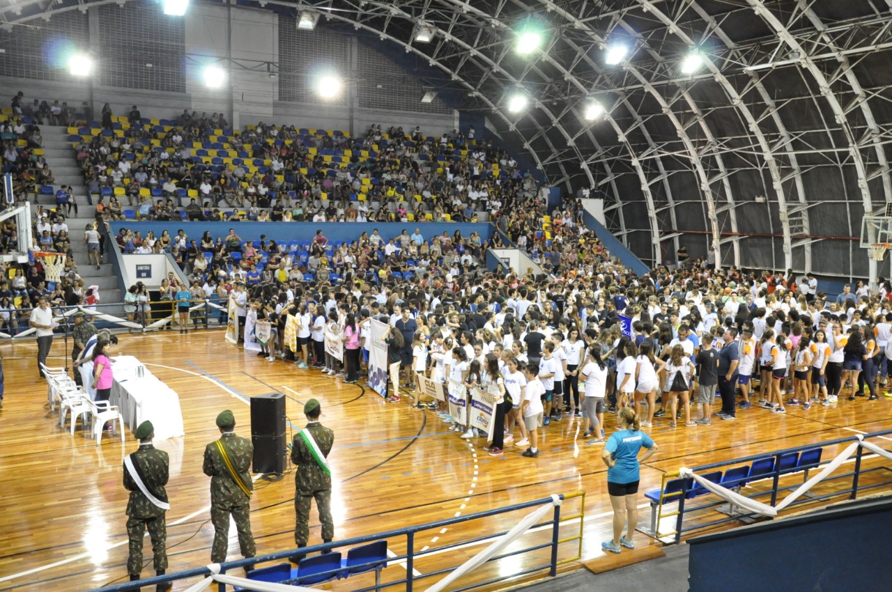 Cerimônia de abertura dos Jogos Estudantis reúne centenas de pessoas no Ginásio Municipal