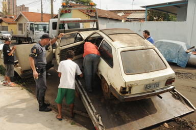 A Prefeitura Municipal através da Secretaria Municipal de Trânsito e Transportes (Semuttran), com apoio da Polícia Militar, recolheu nesta quarta-feira (28/10), três veículos abandonados na rua Virgílio Furlan, na região da Paulicéia. Ambos foram guinchados. A ação já faz parte do convênio assinado com a Secretaria de Segurança Pública para regulamentar e estabelecer competências à Polícia Militar do Estado quanto orientação, fiscalização e autuações de trânsito, estabelecido pelo CTB.