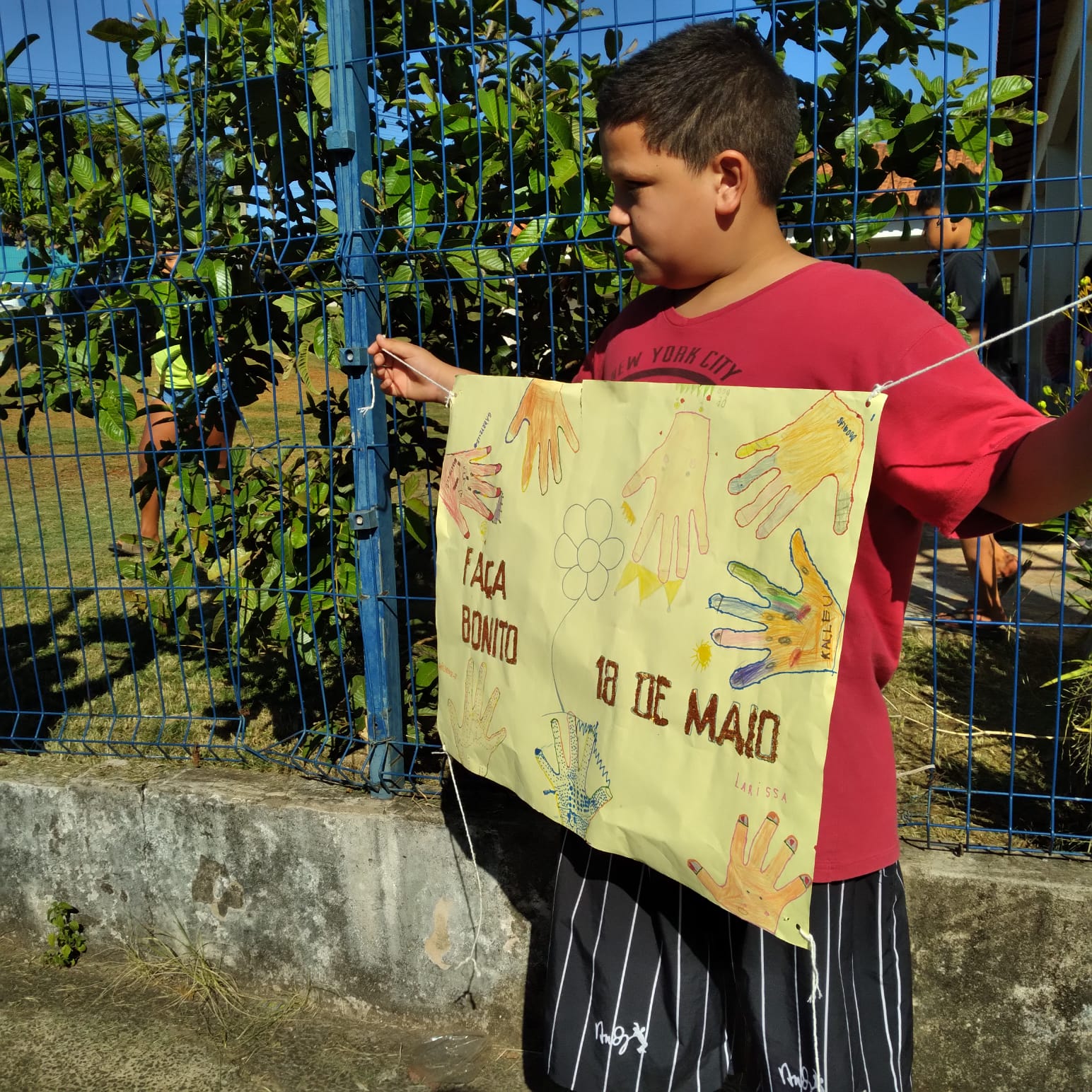 No dia 19/05, às 9h e às 14h, o CCInter Jardim Itapuã reúne crianças e adolescentes em passeata no entorno da unidade, para orientar sobre abuso e exploração sexual de crianças e adolescentes.