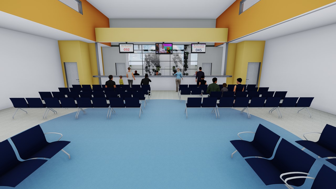 Croqui mostra a vista da área de atendimento ao público da Policlínica do Parque Piracicaba