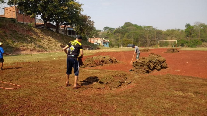 PARCERIA – A reforma do gramado do campo do Panorama está acontecendo por meio de uma parceria firmada entre a Prefeitura, por meio da Sedema, e a comunidade local, através da direção da agremiação esportiva.