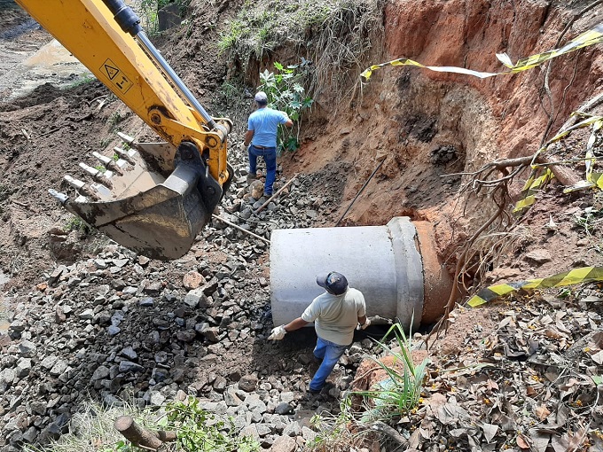 A obra consistiu na limpeza do local e execução da base em rachão, espécie de pedra, para o assentamento de cerca de seis metros de tubos de 1 metro de diâmetro. Com a colocação dos tubos, o aterro foi refeito.