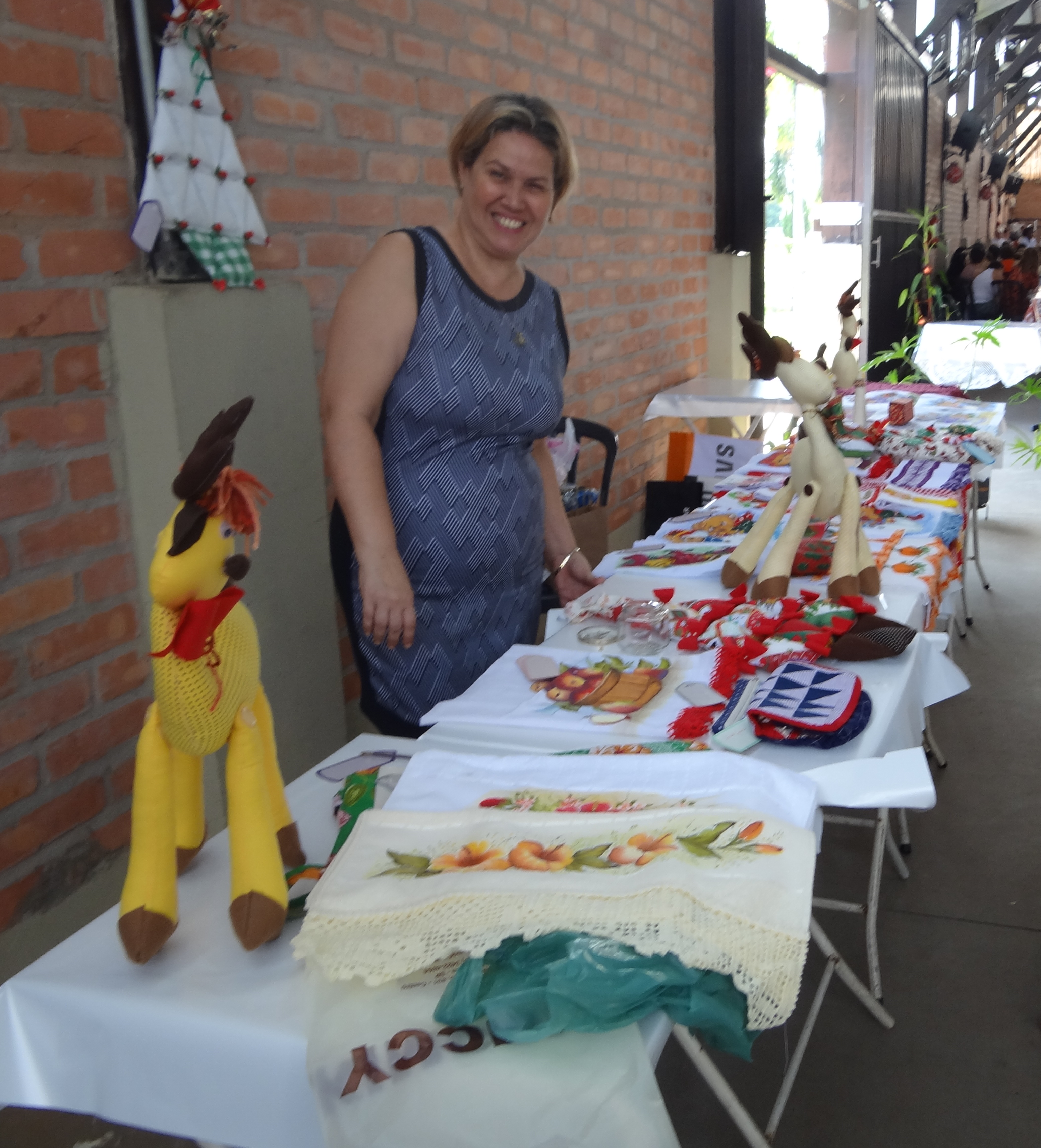 Lúcia Danelon, professora de artesanato, com as peças produzidas no curso de artesanato