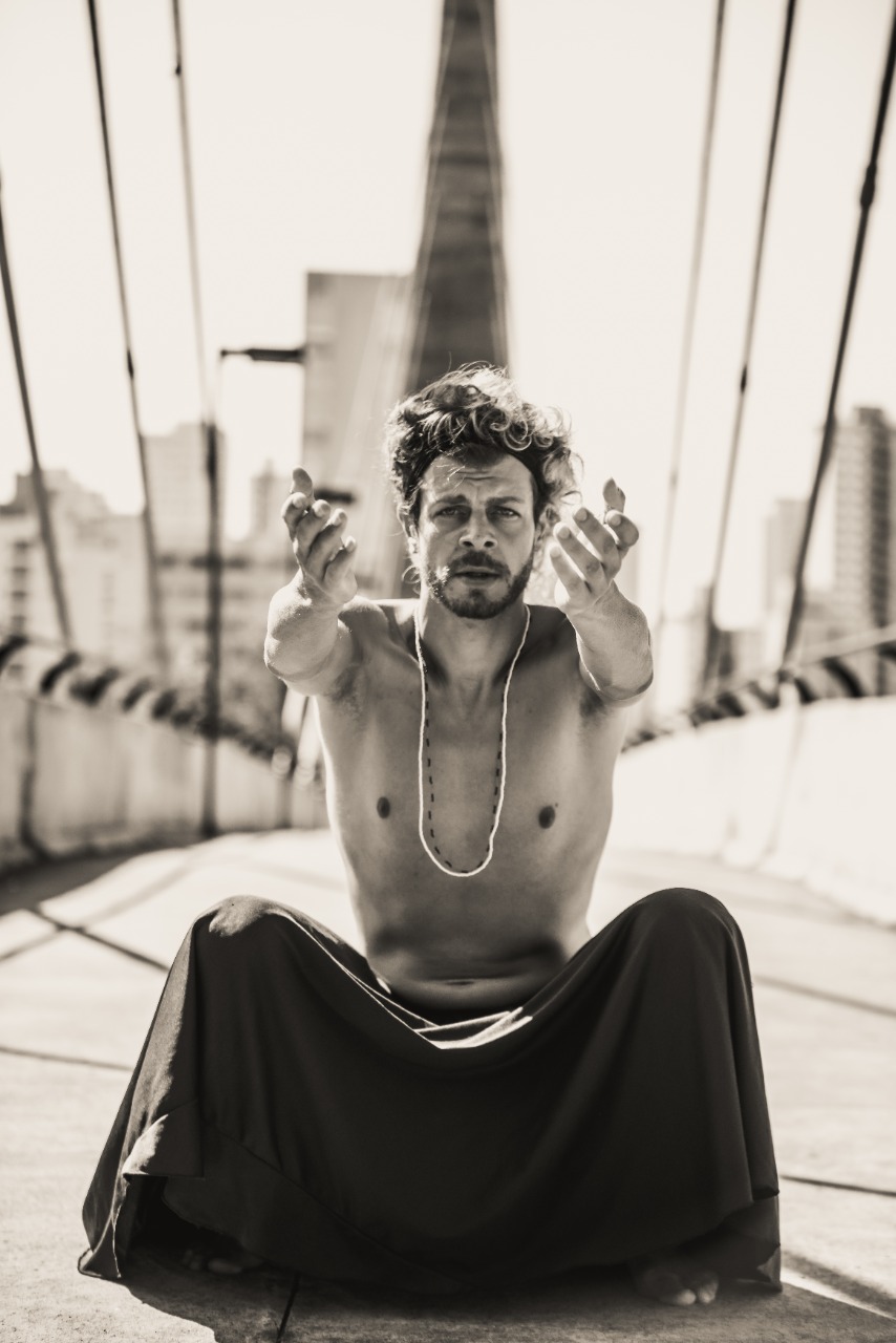 O proponente Samuel Zanatta em perfomance durante as oficinas Foto Thiago Rochetto