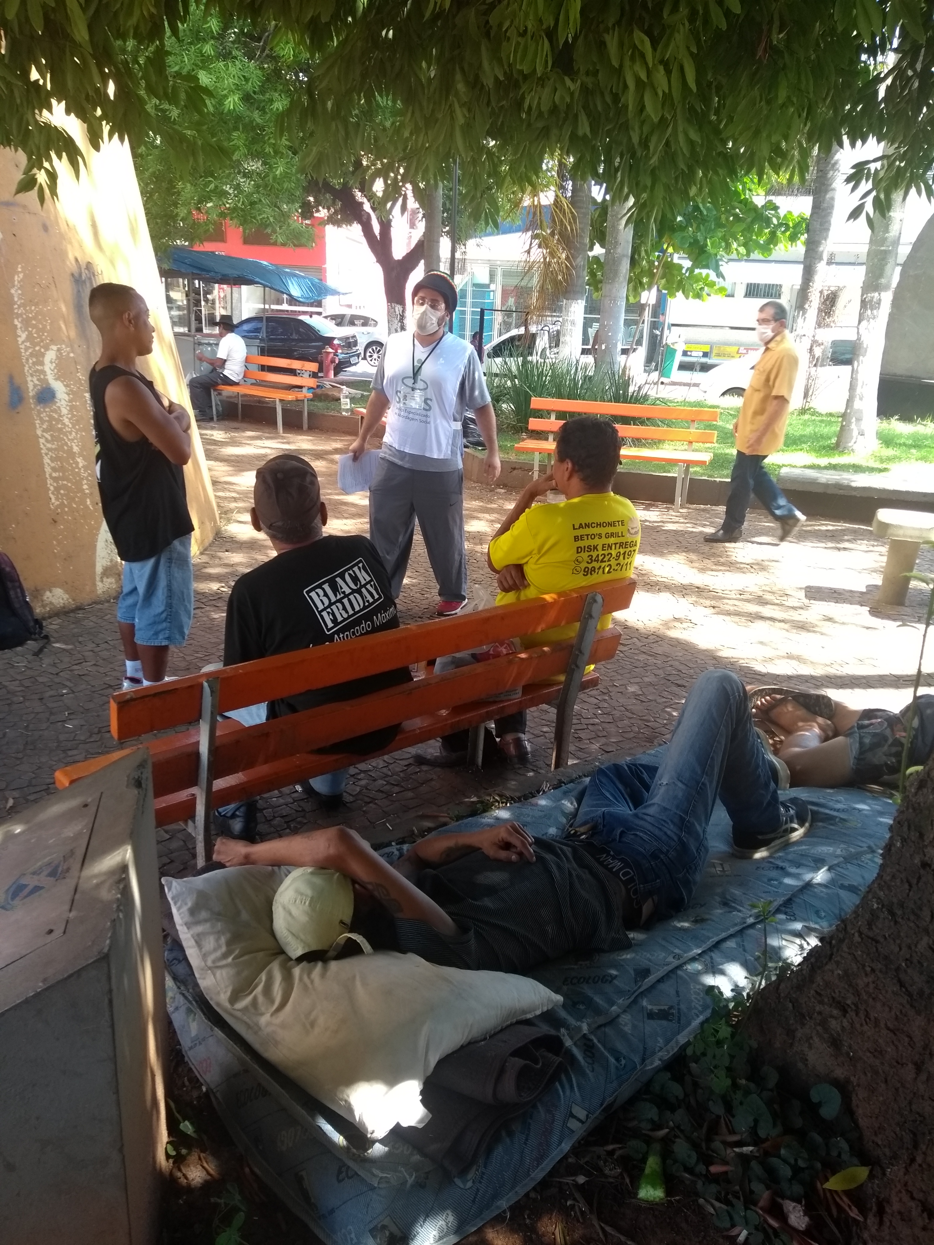 Abordagem aconteceu em vários pontos, como a praça do Parafuso, na foto: 25 pessoas aceitaram local para se isolar Esse trabalho será desenvolvido pelos técnicos da equipe do Serviço Especializado em Abordagem Social (Seas) em parceria com o Centro Regional de Atenção aos Maus Tratos na Infância (Crami). Durante a abordagem, a equipe explica a este público os riscos de ficar nas ruas neste período de pandemia, a importância do isolamento social e quais benefícios eles terão em se alojar no Centro de Acolhimento, onde terão tratamento diferenciado, incluindo atendimento médico, odontológico e terapia ocupacional, além de quatro refeições diárias.