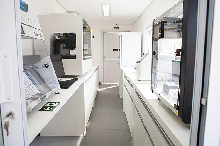 Com as análises realizadas dentro do LAB Móvel é possível obter o resultado em até 24 horas (a partir do momento em que as amostras chegam ao container) e, em seguida, inicia-se o sequenciamento, que pode durar de três a seis dias. Atualmente todo o processo entre a testagem de amostras e o sequenciamento de variantes pode durar de 10 a 12 dias. "Além disso, teremos maior precisão já que hoje o sequenciamento genético é feito por amostragem em apenas 20% dos casos positivos. Com o laboratório, 100% dos casos positivos serão analisados", explicou Filemon Silvano.