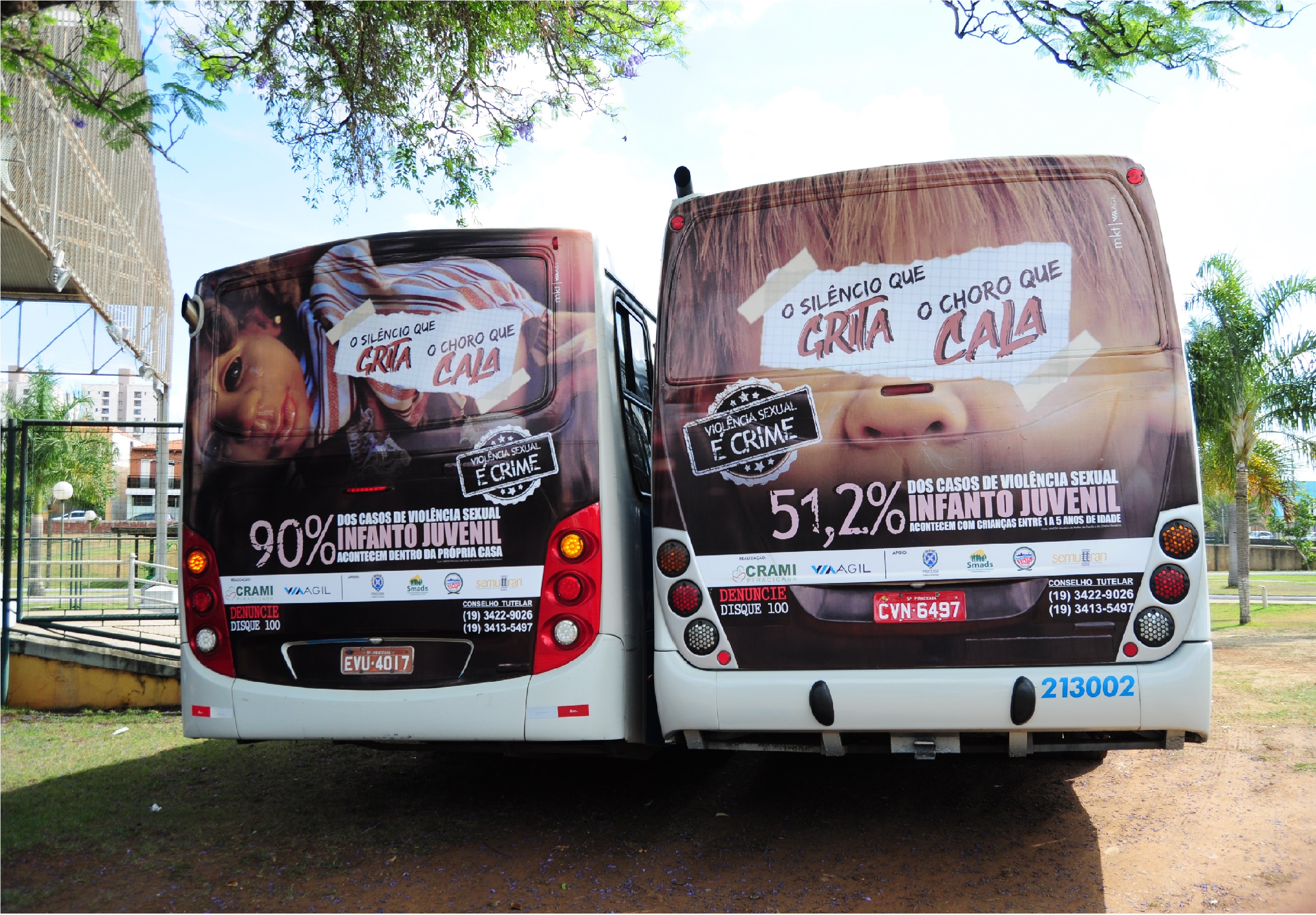 Ao longo dos próximos meses, quatro ônibus da Via Ágil estamparão no backbus a campanha criada pelo departamento de marketing da empresa. Além disso, cartazes e folderes serão distribuídos e as TVs do Terminal Central irão mostrar vídeos referentes ao tema. “A violência sexual contra crianças é uma grande violação de direitos, traz consequências físicas, psicológicas e sociais às vítimas. O índice de violência sexual é muito alto, porém, o número maior é ainda maior do que as estatísticas apontam, pois, de acordo com as literaturas sobre a temática somente 20% dos casos são notificados, motivo pelo qual esta campanha preventiva em parceria com a Via Ágil é muito importante, visto que um grande número de pessoas terão acesso às informações e poderão denunciar , contribuindo para que as crianças e adolescentes tenham seus direitos garantidos”, disse o presidente do Crami, Edmir Bernardino Valente.