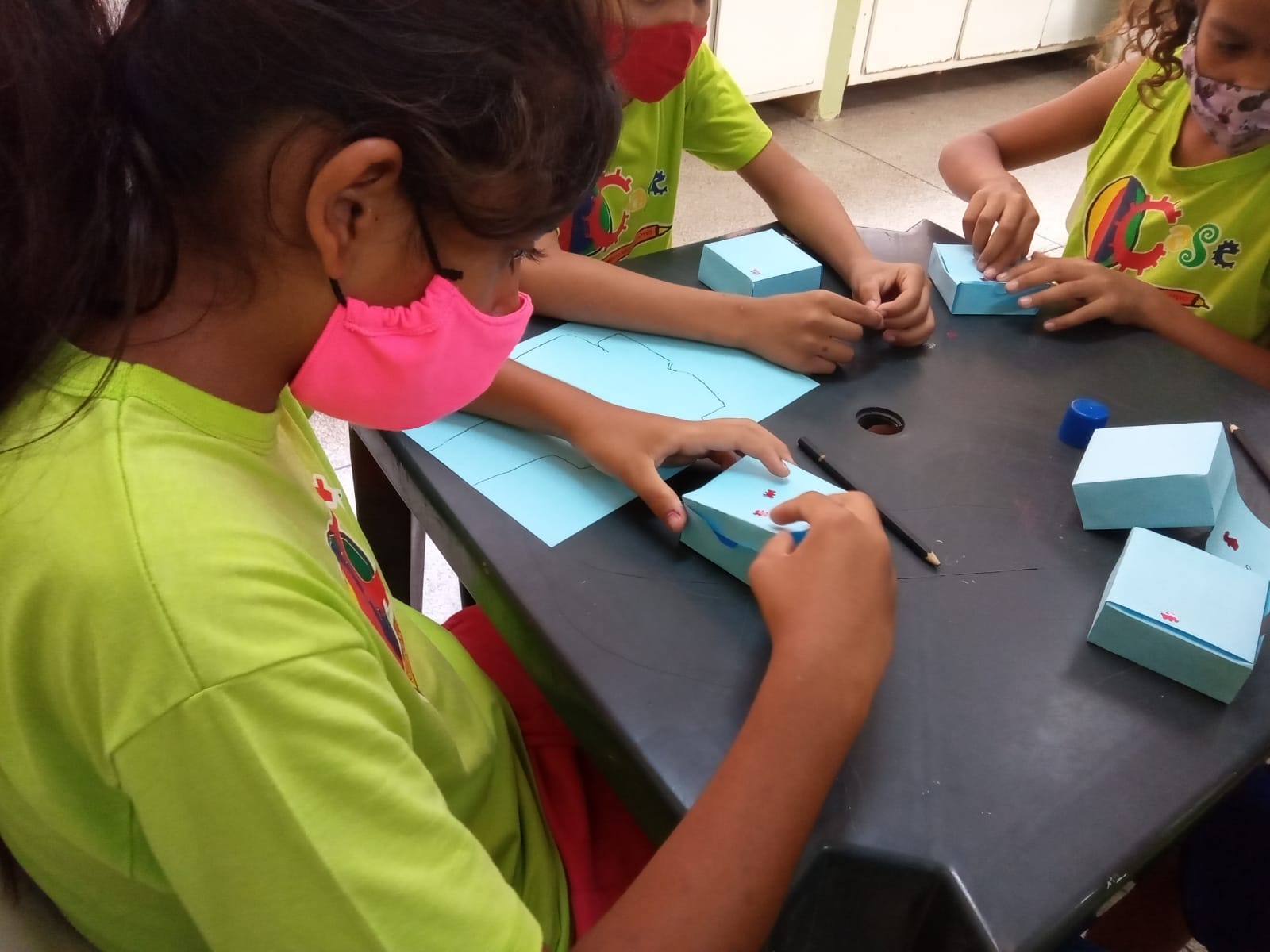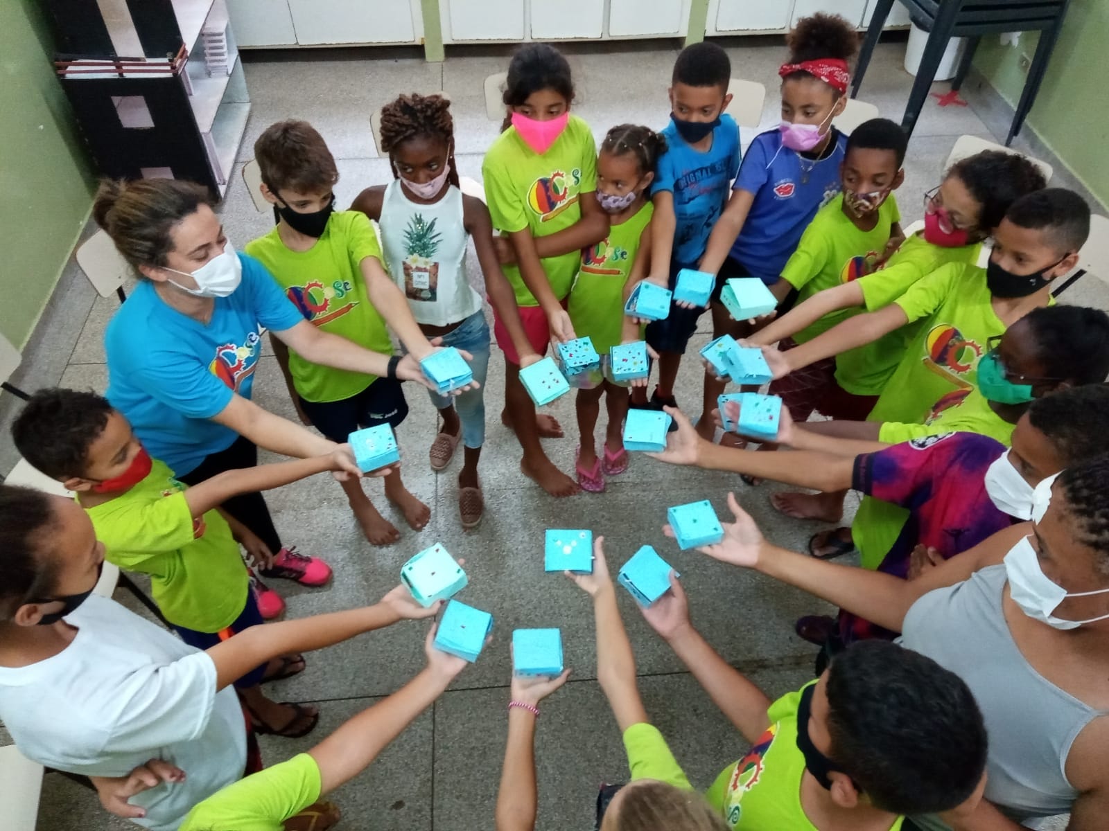 Crianças e adolescentes decorando suas caixinhas dos sonhos