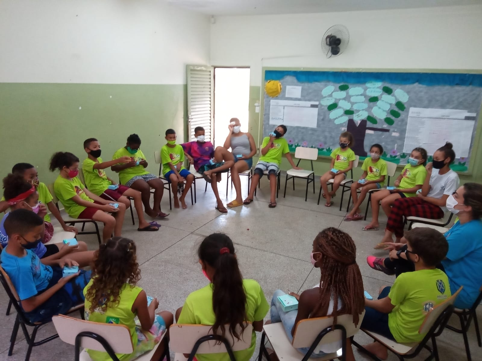 Roda de conversa entre educadores, crianças e adolescentes sobre sonhos e perspectivas para o futuro