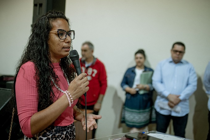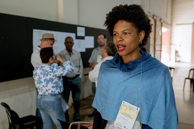 Sandra Raquel, representante da região Norte, falou em nome da sociedade civil