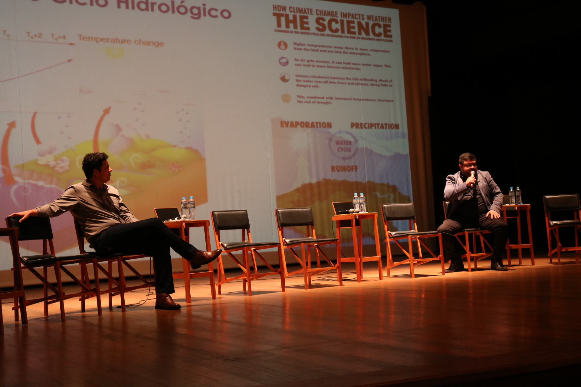 Saulo Aires de Souza (à direita) palestrou sobre as consequências das mudanças climáticas | Foto: Andressa Mota/CCS
