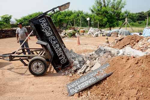 Já o autônomo João Batista Barros, 54, criou um jeito de garantir uma renda extra: ele faz carreto de resíduos de construção civil até o ecoponto do bairro Monte Rey. "Em vez de descartar os restos da construção na rua, o pessoal me chama, eu vou lá, faço a limpeza e venho descartar aqui, porque é o lugar certo. Em troca disso, ganho um dinheirinho", conta.