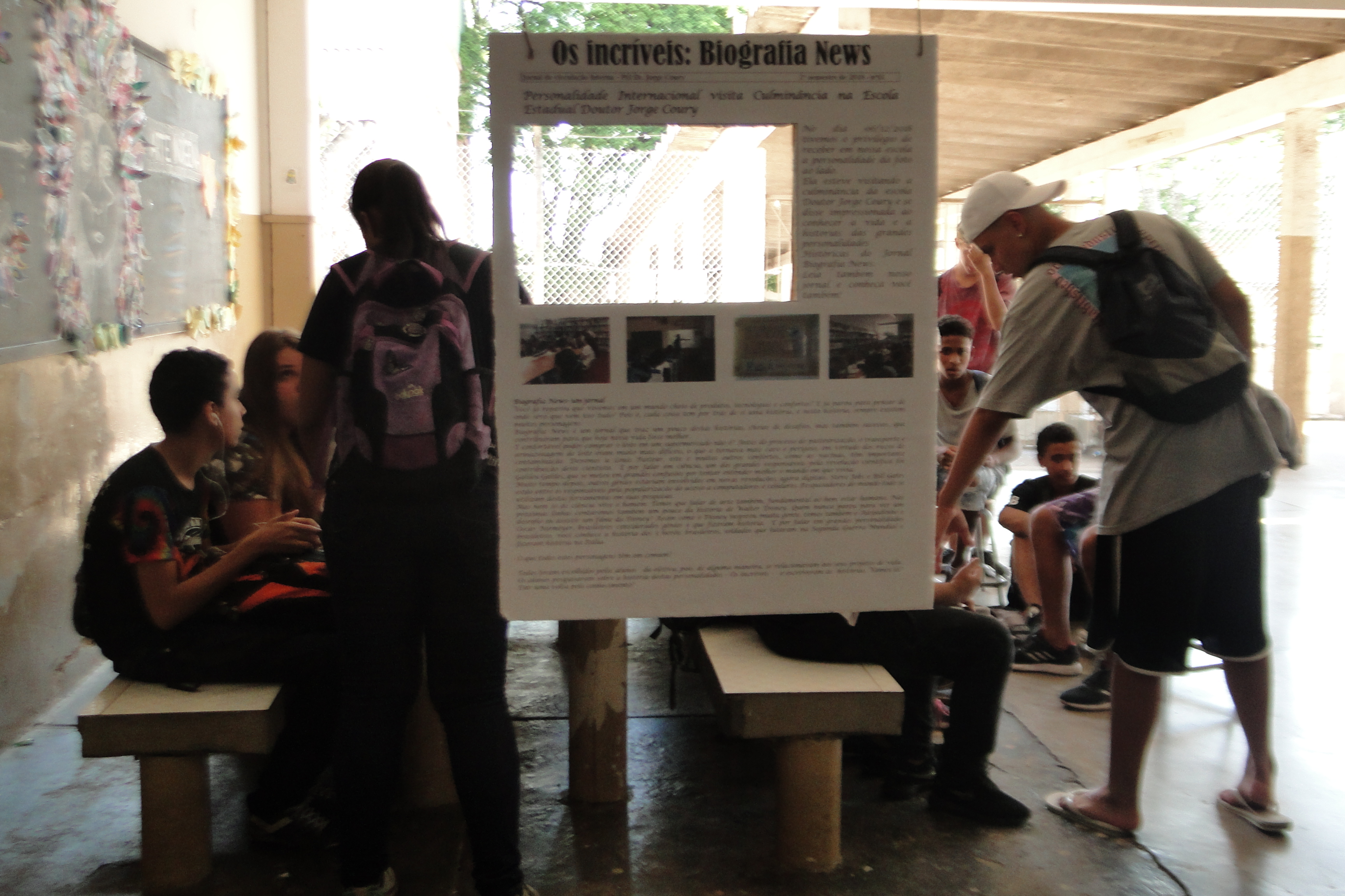 No Jorge Coury localizado na área central, após a realização das oficinas, os estudantes reproduziram vídeo e jornal impresso como um trabalho final para a disciplina eletiva. “Juntamos a ideia de trabalhar um jornal sobre grandes personalidades, às orientações sobre produção de vídeo, formatação, iluminação e análise da comunidade. O resultado foi espetacular. Além das gravações, os estudantes entre 14 e 17 anos, criaram Os Incríveis: Biografia News, um tablóide com textos sobre a vida de Galileu Galilei, Walt Disney, Steve Jobs, Nelson Mandela entre outros personagens”, contaram os professores Ricardo Lourenço e Ana Paula Barros.