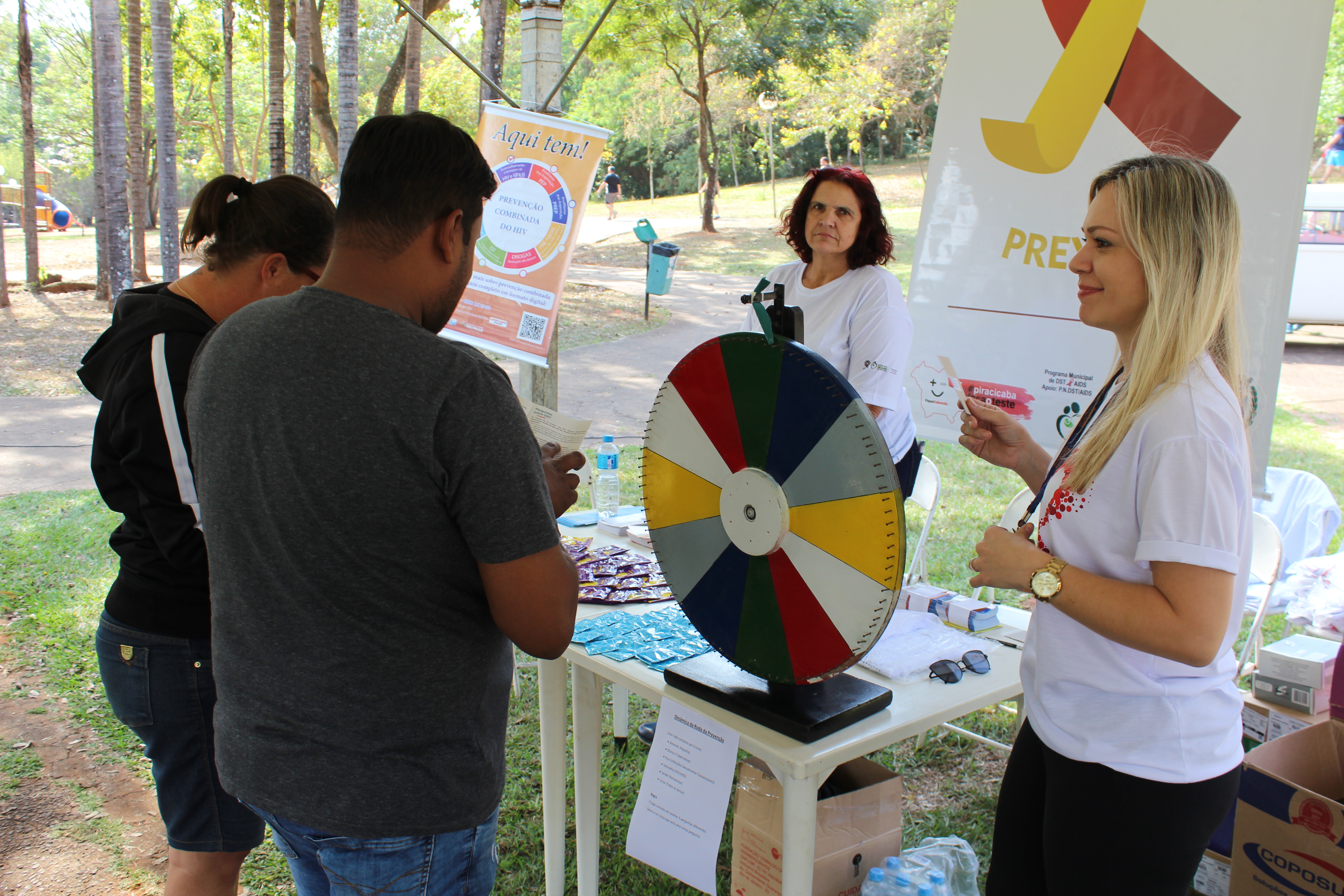 Professores e estagiários da Unimep, Etec Fernando Febiliano da Costa, Esalpi deram suporte às atividades nas praças. Profissionais da Rede Drogal e Droga Raia ofereceram exame de pressão e de glicemia, junto com profissionais da saúde.