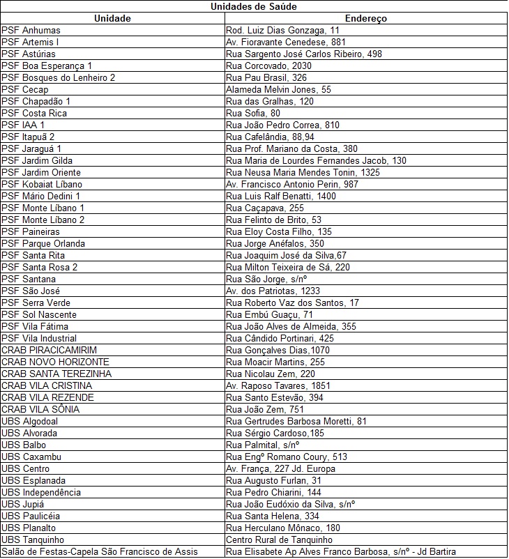 As UBSs e USFs estarão abertas das 8 às 17 horas para a imunização. Haverá ainda um ponto de vacinação no salão de festas da capela São Francisco de Assis no Jardim Bartíra. Pais e responsáveis devem comparecer com seus filhos às unidades, portando a Carteira de Vacinação, para receberem a dose vacinal.