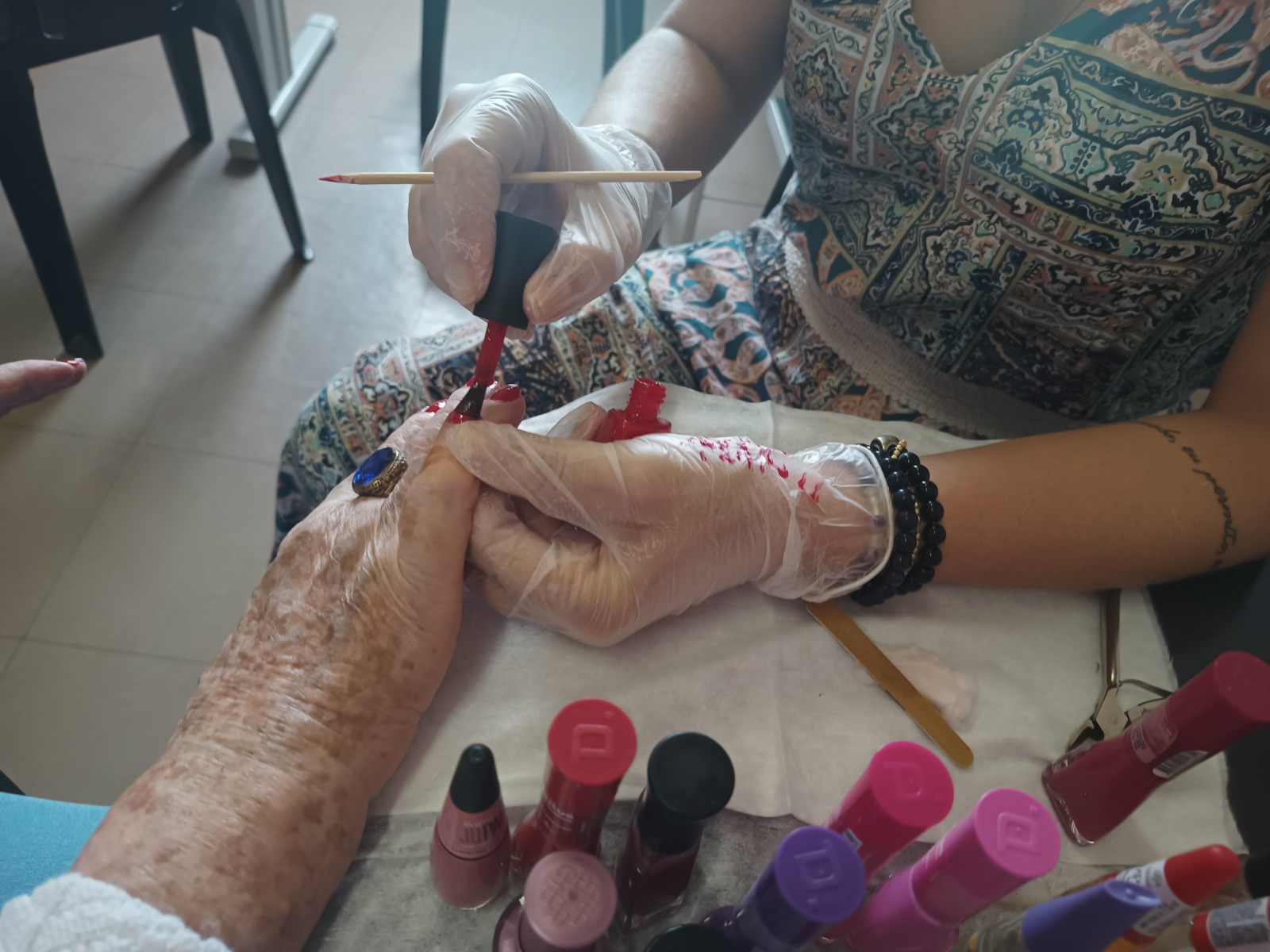 Com as unhas esmaltadas, Lourdes Tavares, 82, fez questão de se apresentar aos demais participantes da oficina de beleza, que aconteceu na manhã de hoje, 12/04, no Centro Dia do Idoso, serviço da Secretaria Municipal de Assistência e Desenvolvimento Social (Smads), executado em parceria com a Associação Franciscana de Assistência Social Coração de Maria (Afascom). “Me sinto mais jovem e cuidada”, exclamou a idosa. Além dela, outros 19 idosos participaram da atividade realizada em parceria entre o Salão Lilian Campos, Esplendore e Walrene Belan.