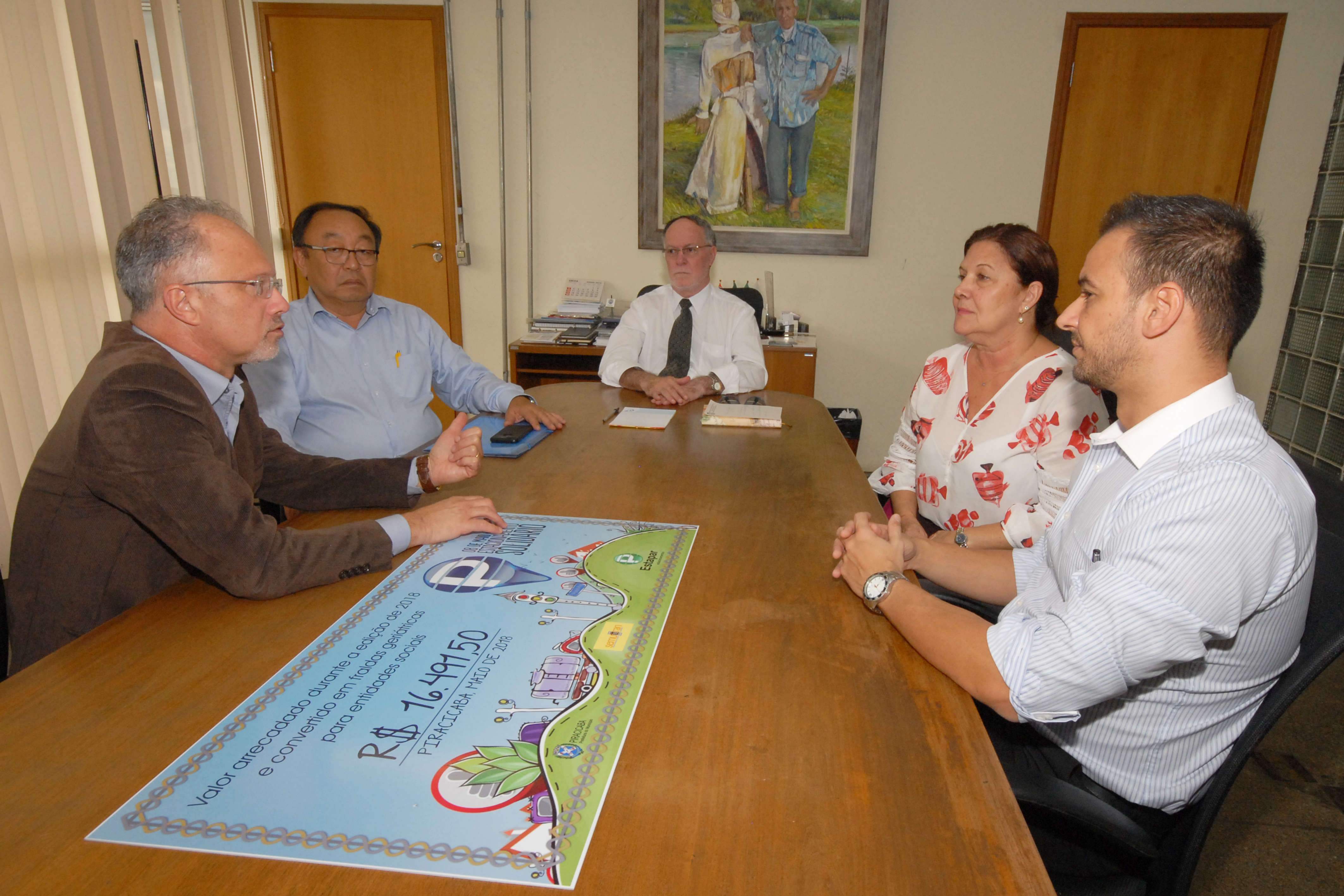 O Fundo Social de Solidariedade de Piracicaba (FUSSP) recebeu nesta sexta-feira (08/06), um cheque no valor de R$16.491,50, da Estapar, empresa que administra os serviços de Área Azul Digital da cidade. O valor é referente ao Dia do Estacionamento Solidário, que foi realizado em 8 de maio, em parceria com a Prefeitura de Piracicaba, a Secretaria Municipal de Trânsito e Transportes (Semuttran) e com o próprio FUSSP. A entrega do cheque foi feita na tarde de hoje, ao prefeito Barjas Negri, e à presidente do Fussp, Sandra Negri, pelo diretor e pelo gerente da Estapar, Adélcio Antonini e Adamilton Strapassano, com a presença do secretário de Trânsito e Transportes, Jorge Akira. “Piracicaba tem uma grande frota de veículos. Dados da Semuttran apontam que circulam pelas ruas da cidade 303 mil veículos, o que representa 1,3 habitante por veículo. Então, o sistema da Zona Azul Digital da Estapar é uma forma de democratizar as vagas centrais. Sobre o Dia do Estacionamento Solidário, essa ação é uma contribuição muito importante para auxiliar as campanhas realizadas pelo Fussp ao longo do ano. Somos muito gratos à Estapar”, observa o prefeito Barjas Negri.