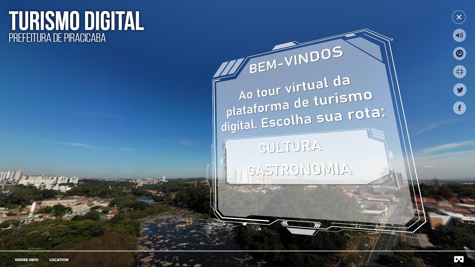 Tour Virtual passa por diversos pontos turísticos às margens do Rio Piracicaba “Essa proposta do Tour Virtual foi criada em comemoração aos 255 anos de Piracicaba, que será em 1º/08. Em breve, esse atrativo estará disponível para a população no Casarão do Turismo, para que piracicabanos e turistas tenham a possibilidade de visitar nossa cidade de um modo diferente, em uma experiência que une tecnologia e inovação”, comentou a diretora municipal de Turismo, Rose Massarutto, acrescentando que o atrativo foi desenvolvido em parceria com as startups Conexão Web e Estúdio Monumental.