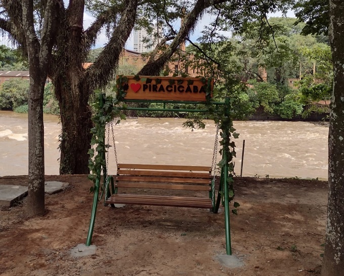 Para incentivar o turismo na cidade, fomentando postagens de fotos e vídeos nas mídias sociais, a Diretoria de Turismo, vinculada à Semdettur (Secretaria de Desenvolvimento Econômico, Trabalho e Turismo de Piracicaba), disponibiliza a partir deste sábado, 11/02, nova atração na região da Rua do Porto. É o balanço namoradeira, instalado na avenida Beira Rio, nas proximidades da passarela pênsil, tendo como cenário de fundo o rio Piracicaba e o Engenho Central, tradicionais pontos turísticos do município. Essa novidade, que pode ser usada todos os dias gratuitamente, integra o projeto Turismo Instagramável, que visa a criação de espaços específicos para que o público faça imagens e poste na Internet.