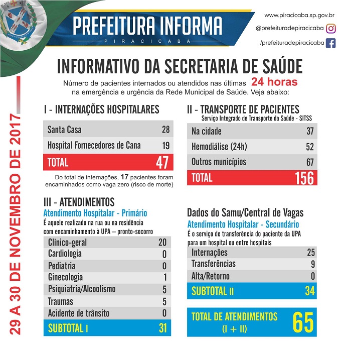 Divulgados atendimentos de Saúde das últimas 24 horas