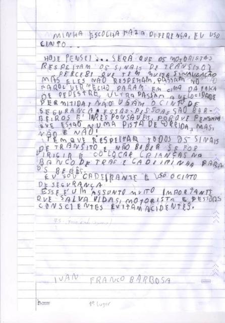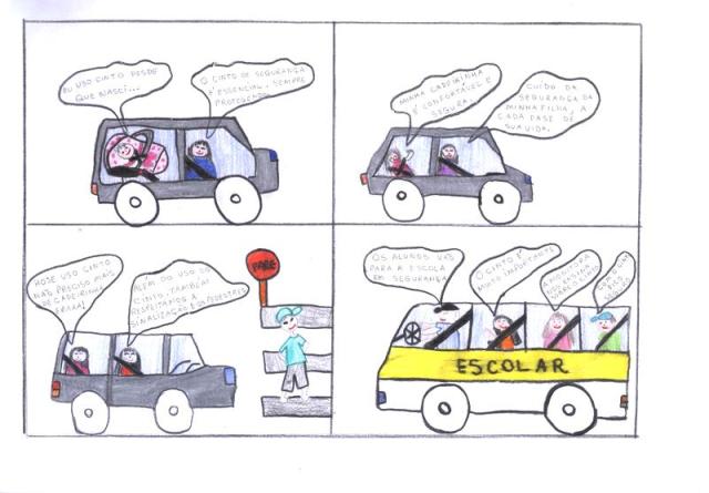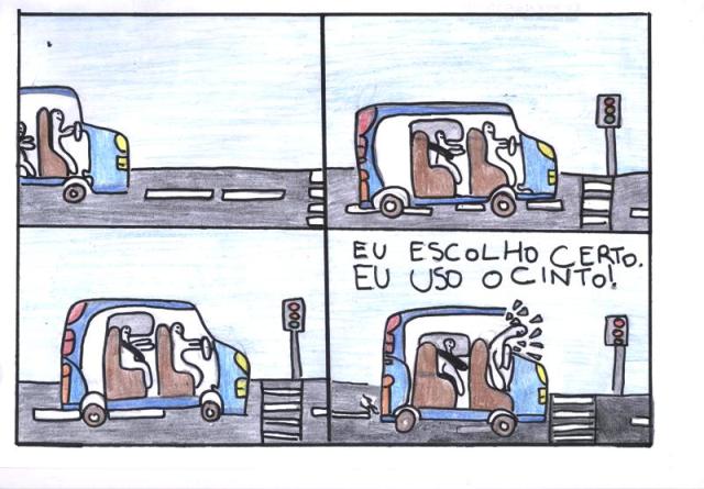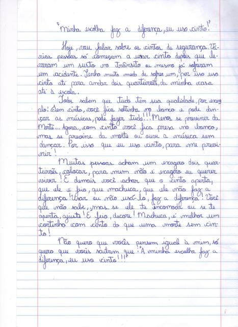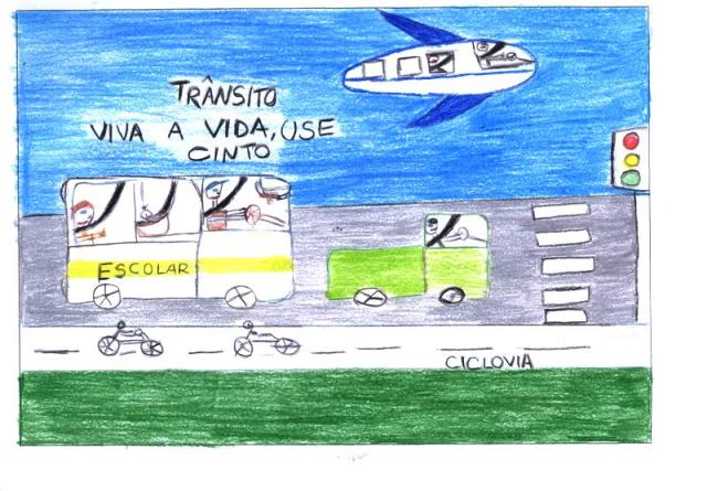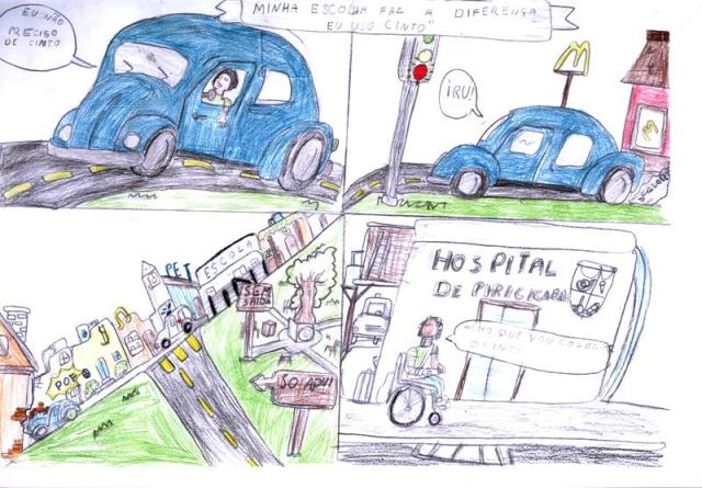 Os participantes soltaram a imaginação e, com bastante dedicação e criatividade, desenharam e escreveram sobre o tema "Minha Escolha faz a Diferença, eu Uso Cinto".