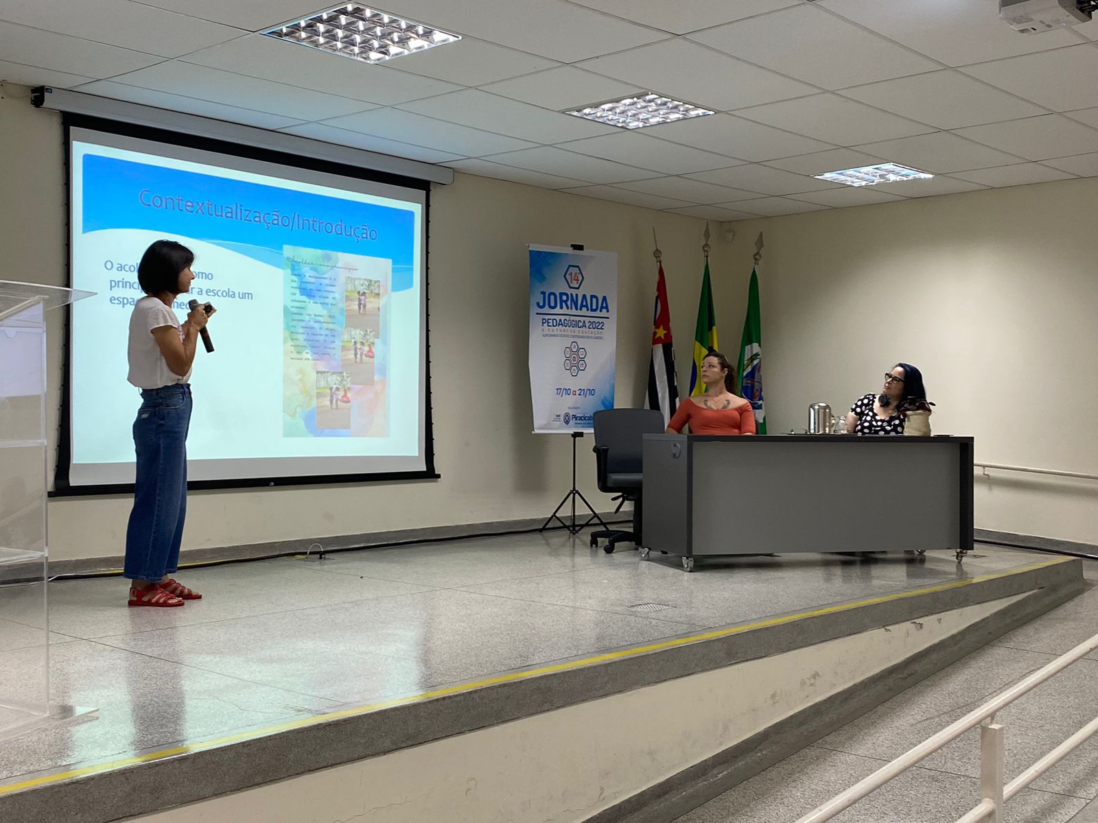 A Jornada Pedagógica deste ano, contou com mais de 7 mil inscritos e com mais de 11 mil visualizações pela página da SME no youtube através das transmissões ao vivo. Quem também avaliou o evento como bem-sucedido foi a supervisora Aline Ambrosano, em nome das Comissões de Organização e de Relatos. “Hoje encerramos a 14ª Jornada Pedagógica com o coração cheio de gratidão. Os profissionais da rede participaram, se envolveram e fizeram dessa Jornada um sucesso. As palestras foram maravilhosas, com palestrantes de renome, e a apresentação dos relatos e banners encerrou com êxito esse momento de trocas de experiências e partilha. A Comissão Organizadora e de Relatos agradece as devolutivas tão carinhosas da nossa Rede”, comentou. DIA 18/10 – Na terça-feira, dia 18/10, a programação teve as palestras Leitura como Prática Social: da Vida para a Escola, com a professora Renata Barroso de Siqueira Frauendorf; Os Desafios das Redes e das Escolas na Recomposição das Aprendizagens: Possibilidades e Perspectivas para os Próximos Anos, com a professora Katia Smole, e A Importância do Trabalho Colaborativo de Toda Equipe Escolar para uma Inclusão Eficaz, com a professora Maria Aparecida Ramires Zulian. As apresentações aconteceram no Anfiteatro Professor Hamilton Fernando Torrezan, na sede administrativa da SME e, somadas, contaram com 1.904 inscritos e 6.669 visualizações pelo Youtube. Ainda na terça-feira, houve momento cultural e a apresentação musical realizada pelos servidores da SME Mirian Mendes e Emerson Toledo.
