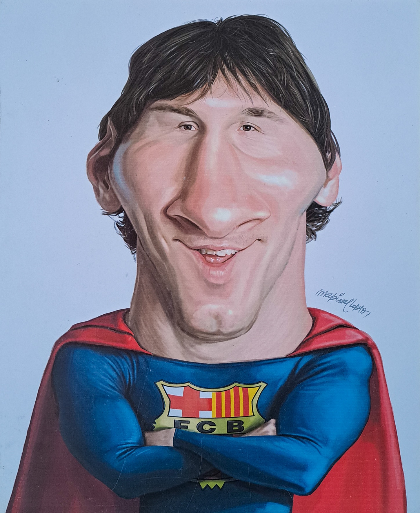 Caricatura de Messi é uma das obras expostas no Centro Cívico