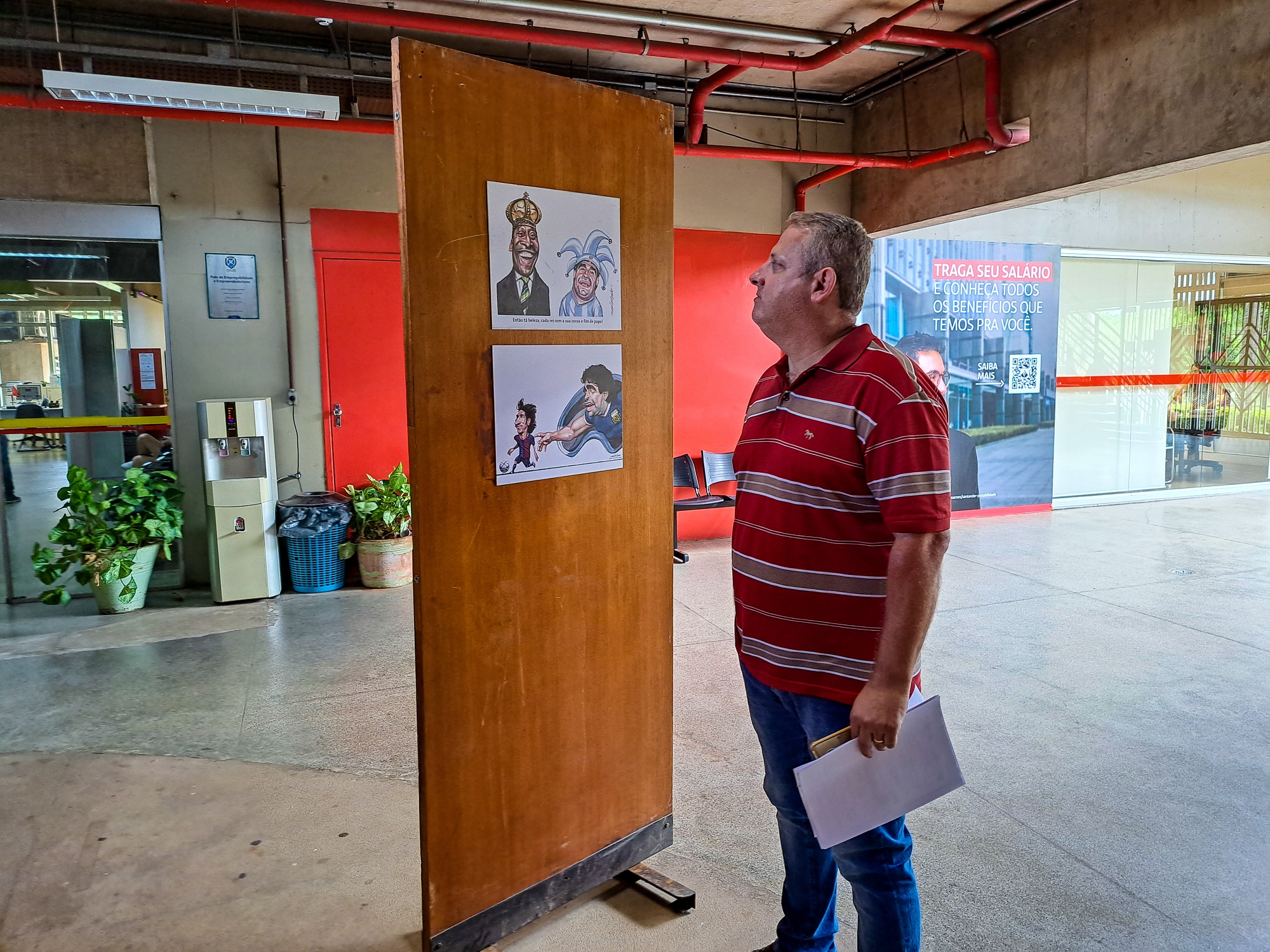 O enfermeiro Eduardo Tavares, 48, que integra a equipe da Secretaria de Saúde da Prefeitura, também aproveitou o momento de passagem pelo hall onde está a exposição para ver os trabalhos. “Essa exposição me trouxe uma memória muito boa, porque meu filho já até participou de uma edição do Salãozinho de Humor. Além disso, as pessoas, que às vezes chegam nervosas na Prefeitura porque precisam resolver uma pendência, acabam deixando a cabeça mais leve ao se deparar com essas obras”, comentou.