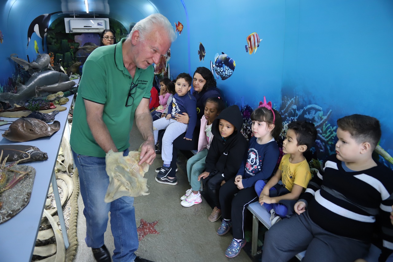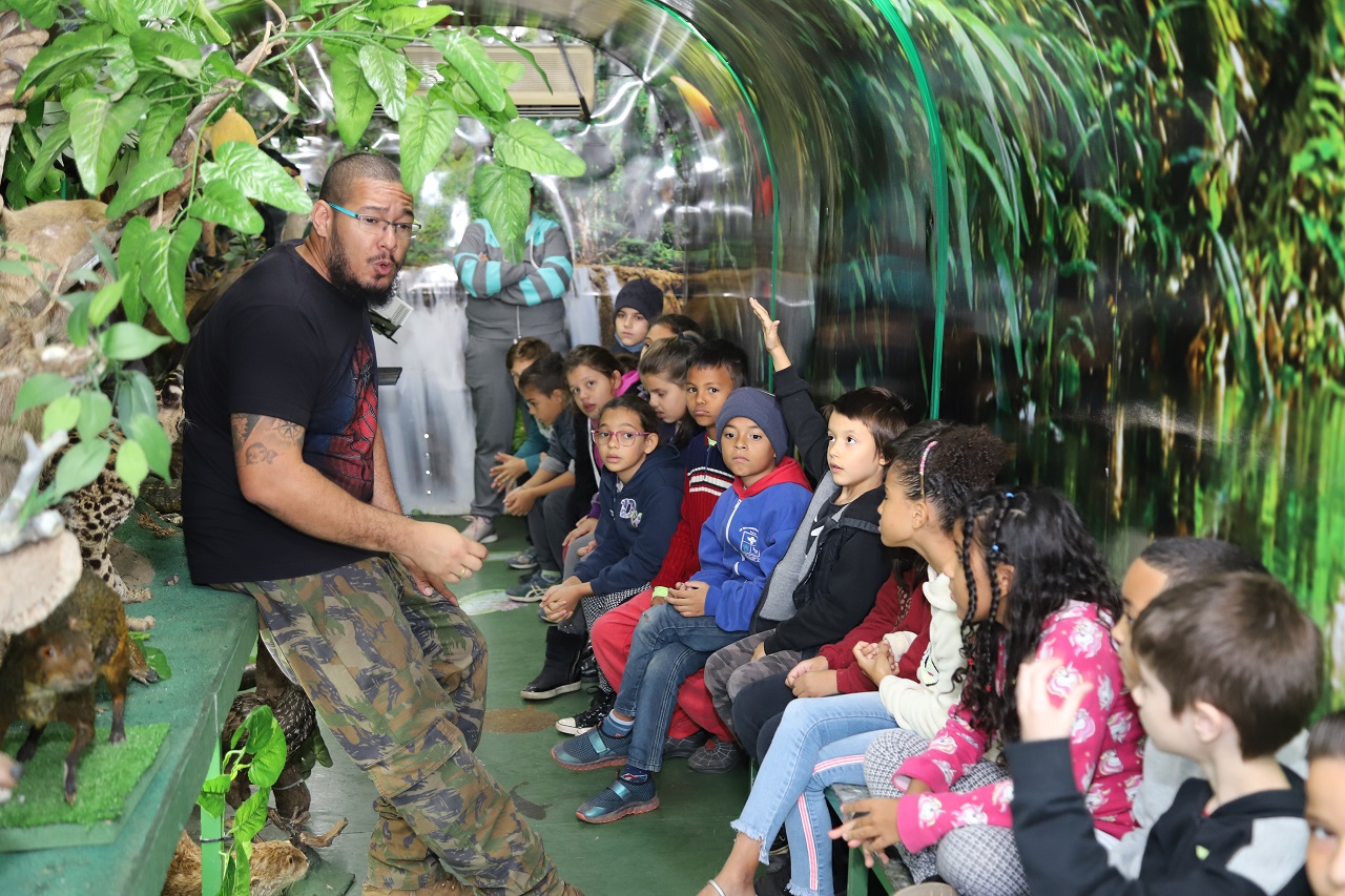 Em uma experiência imersiva na fauna da Amazônia e Vida Marinha, os 299 alunos da Escola Municipal Maria Benedicta Penezzi, durante toda essa sexta-feira, puderam conhecer de perto um dos maiores acervos de animais marinhos do sul do Brasil e da Amazônia, por meio do projeto Conhecendo a Amazônia e Vida Marinha, idealizado pela bióloga Cristina Portela, em parceria com a Polícia Militar do Estado de São Paulo.