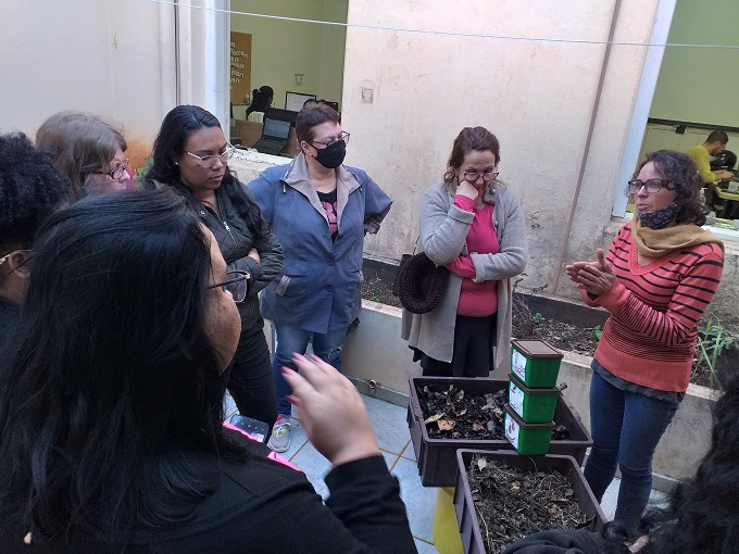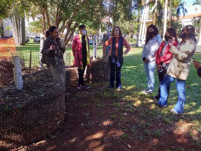 Como encerramento, os profissionais visualizaram a prática de compostagem no Campus da Esalq.