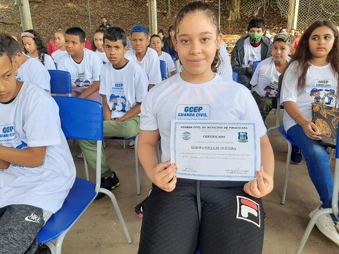 A Escola Municipal Professor Carlos Sodero, no bairro Boa Esperança, abriu hoje, segunda-feira, 20/06, o ciclo de formaturas do programa Guarda Civil Educação é Prevenção (GCEP), desenvolvido pelo Pelotão Escolar da Guarda Civil, que ministra aulas em escolas públicas municipais para alunos dos 5º anos do ensino fundamental com temáticas variadas, como o bullying, ciberbulying, drogas e violência doméstica. A formatura de 53 alunos contou com apresentação da Banda José Romário de Oliveira França e do Canil, ambos da Corporação. A melhor redação de cada turma foi premiada durante o evento.