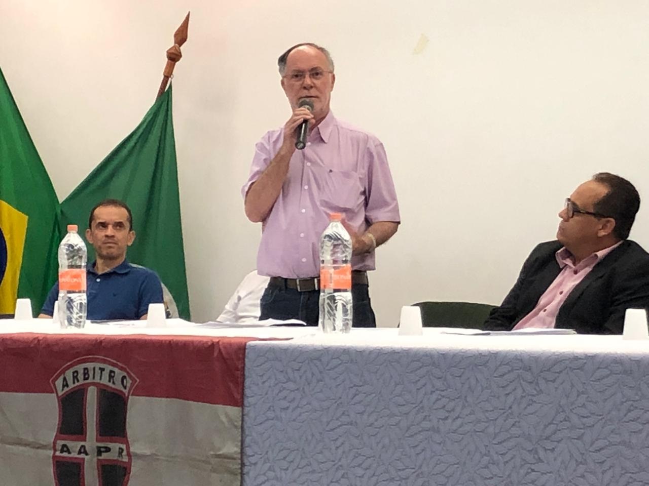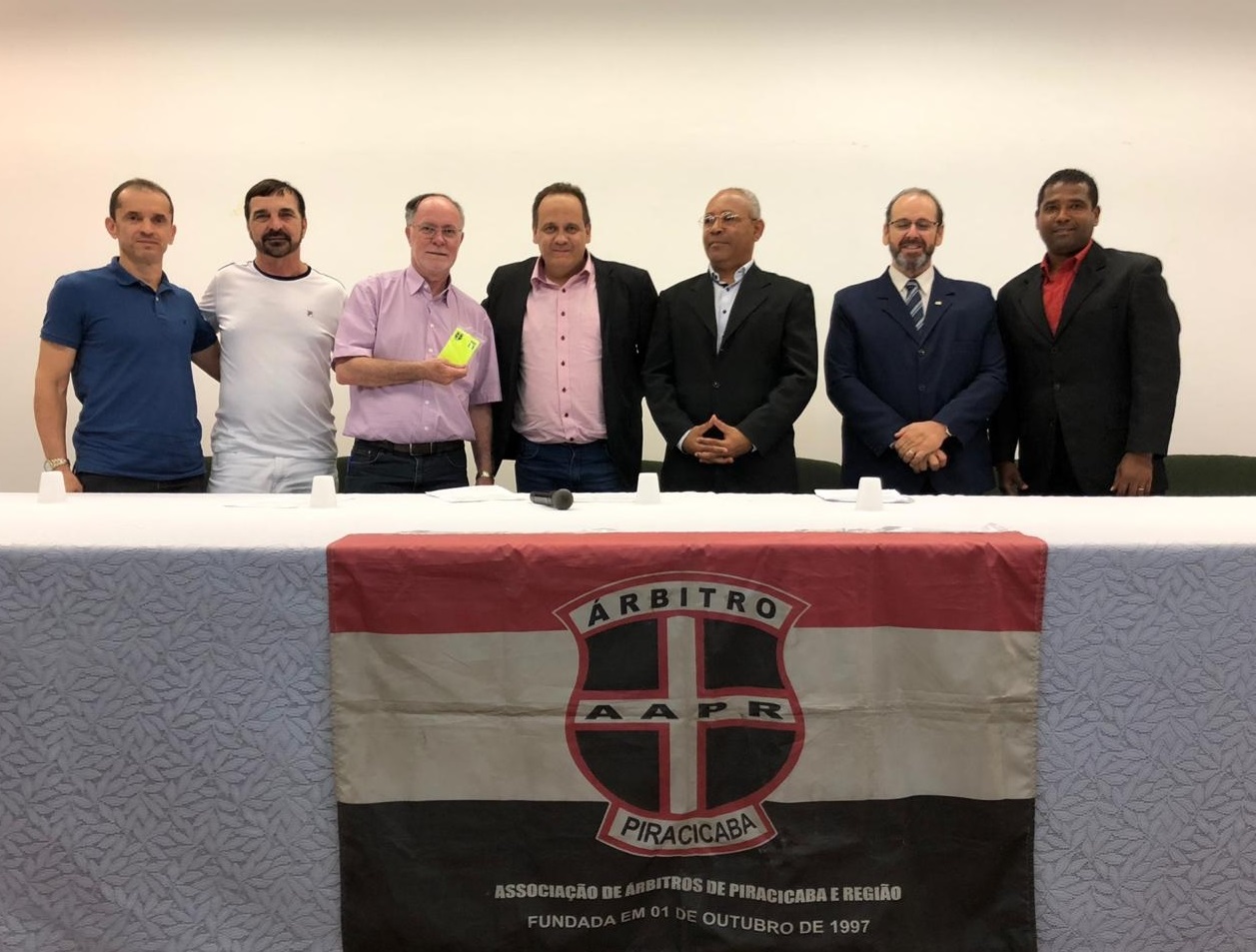 O prefeito Barjas Negri e o secretário municipal de Esportes, Pedro Mello, participaram na noite desta segunda-feira (13/05) da abertura da 20ª edição do Curso de Formação e Aperfeiçoamento de Árbitros de Futebol promovido pela AAPR (Associação de Árbitros de Piracicaba e Região).