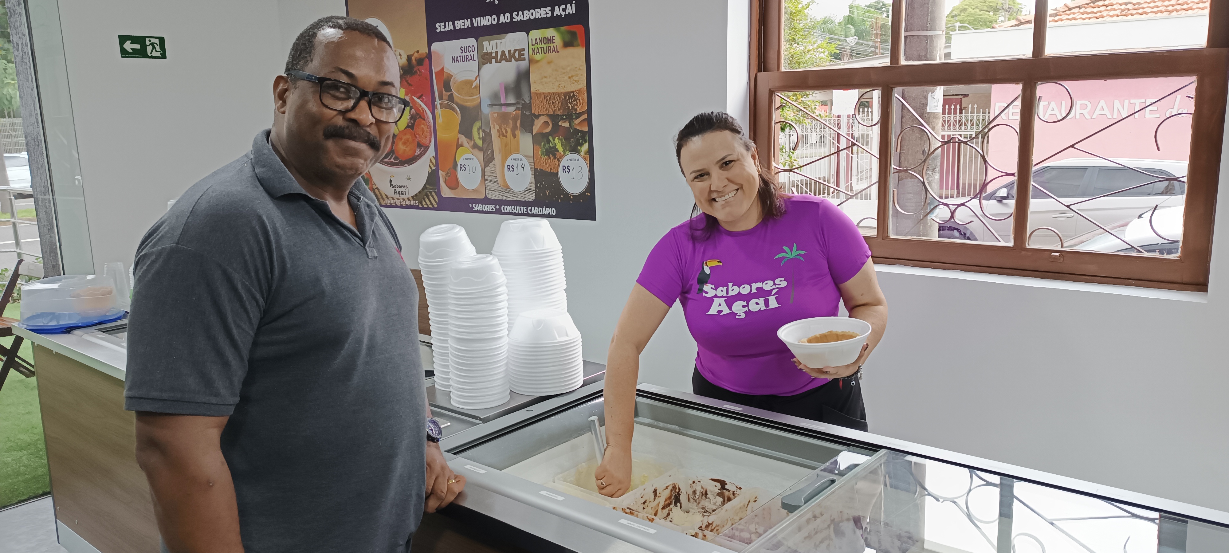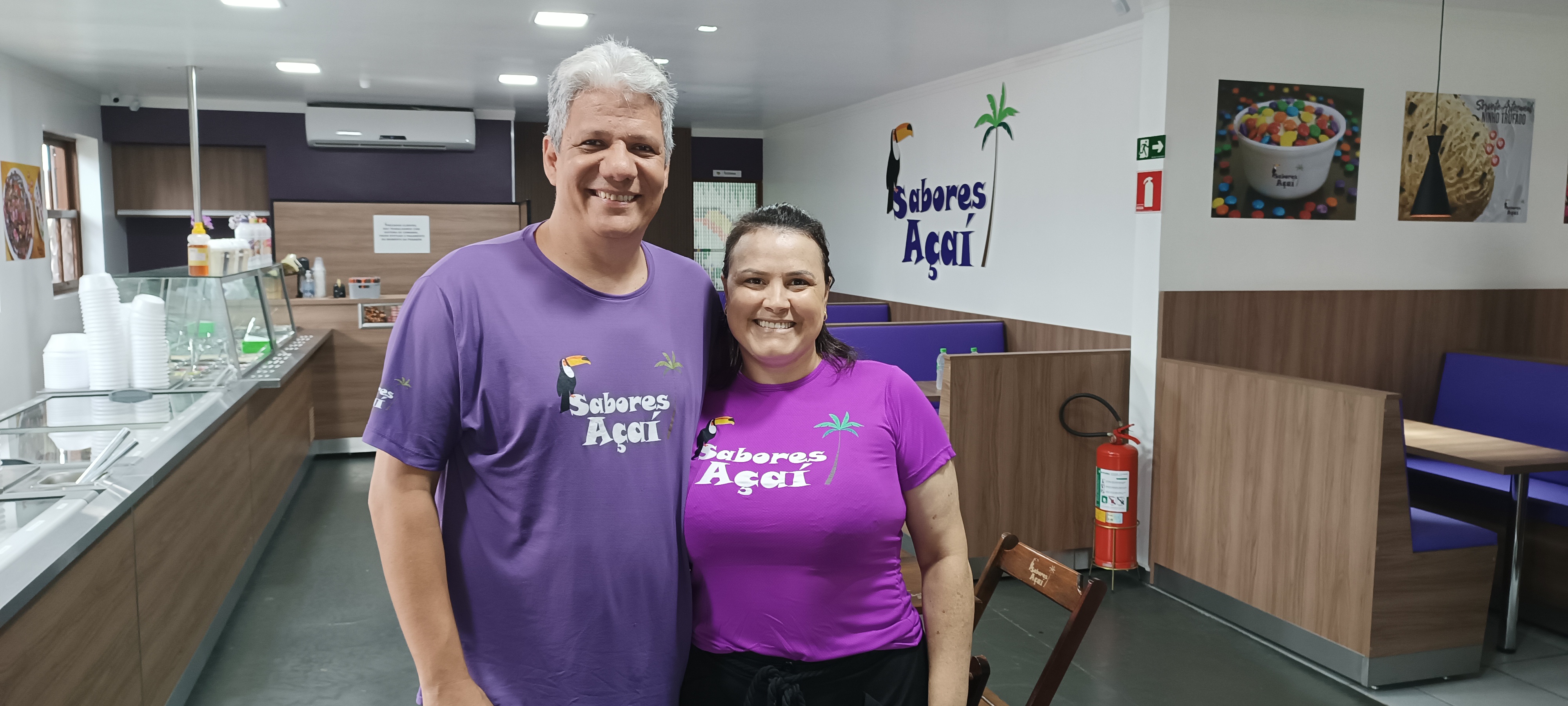 CONDIÇÕES IMBATÍVEIS – O casal Jairo e Rosangela Pierim emprestaram e investiram os R$ 21 mil contratados pela linha Empreenda-Mulher na infraestrutura da sua 2ª loja da franquia Sabores Açaí, inaugurada em 1º/04. A família, que já possui uma unidade da franquia em Santa Terezinha, resolveu empreender, apostando num novo público localizado na avenida Independência, 3574. “Sabemos que a região possui um fluxo considerável por isso investimos na criação de um ambiente tranquilo e harmonioso para que nossos clientes tenham uma experiência agradável ao consumir nossos produtos”, disse Rosangela.