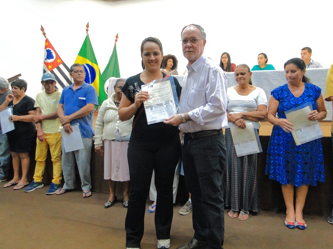 O clima festivo deu o tom a uma solenidade realizada no Anfiteatro do Centro Cívico, no sábado, 18/08. A alegria do público presente tinha uma explicação simples e justa. Na ocasião foi feita e entrega do Certificados de Regularização Fundiária para 258 famílias moradoras do Parque dos Eucaliptos.