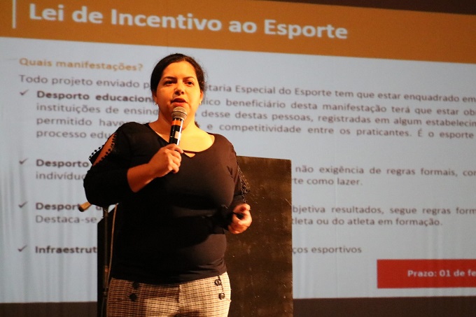 A especialista Caroline Monacci palestrou sobre as Leis de Incentivo ao Esporte (Foto: Jhonnathan Cruz Mathias/ CCS)