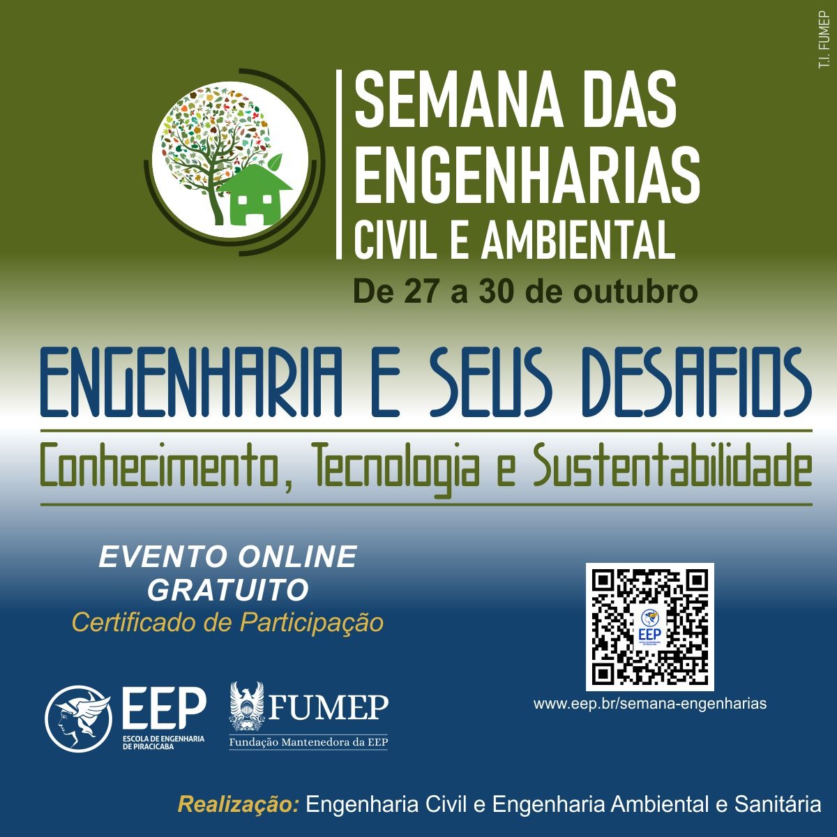 Com a proposta de contribuir para que temas relevantes para a humanidade sejam discutidos no ambiente acadêmico, a Escola de Engenharia de Piracicaba (EEP/Fumep) promove de 27 a 30/10, mais uma edição da Semana das Engenharias Civil e Ambiental.
