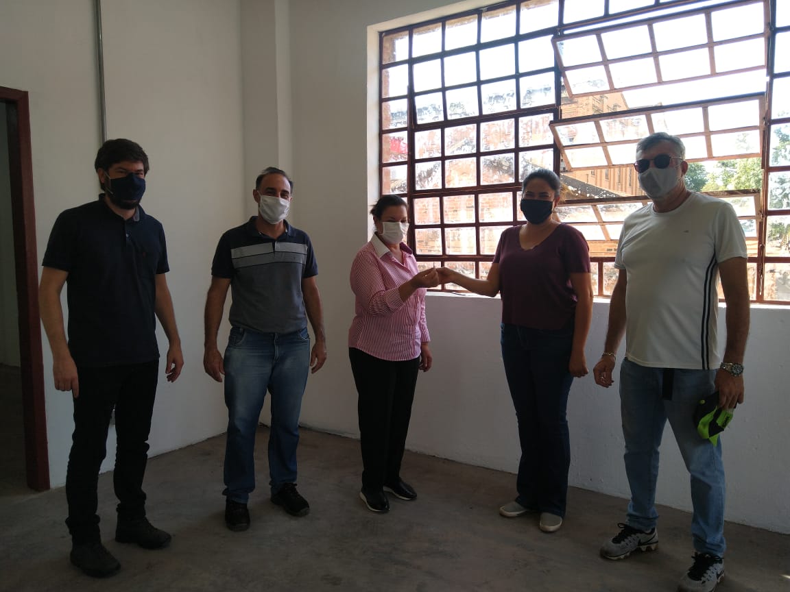 Entrega oficial das chaves da reforma com os engenheiros da Semob Rafael Ciriaco e Gustavo Castro, Rosângela Camolese, Tatiane Caetano da TCS Construções e Dermival da Silva Pinto, diretor do Engenho Central