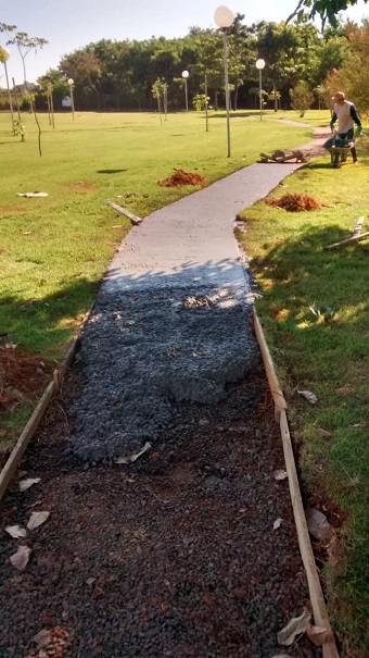 IMPLANTAÇÃO DE ACADEMIA– Concretagem da base para a futura academia do Jardim Tomazella e reparo da pista de caminhada;