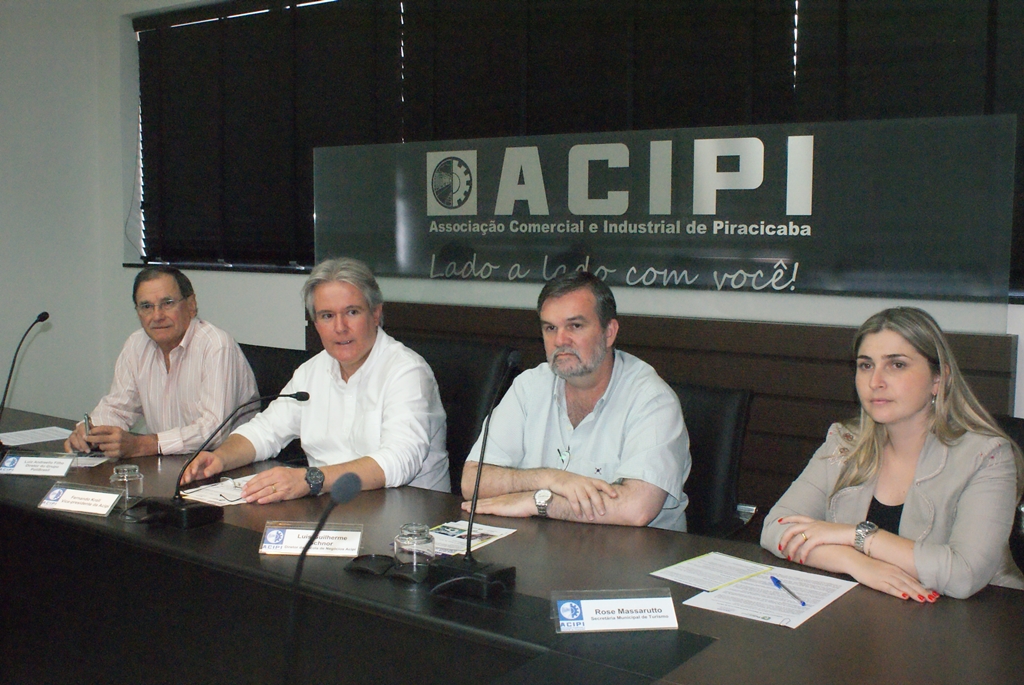 Para o vice-presidente da Acipi, Fernando Kroll, o projeto abre espaço para que associados e comerciários busquem adaptar-se para eventos internacionais que acontecerão no país a partir do ano que vem, como a Copa do Mundo de Futebol e, também, as Olímpiadas de 2016, no Rio de Janeiro. “Poucos lojistas de Piracicaba contam com o serviço de intérprete em seus estabelecimentos. A fim de qualificar os trabalhadores e beneficiar a comunidade, acreditamos que a parceria é muito benéfica para o fortalecimento da economia local, ao capacitar a mão de obra e desenvolver o capital humano do município”, contou, lembrando que a língua inglesa é, hoje, utilizada em praticamente todos os países do mundo, tornando-se uma língua universal. Luiz Andreello Filho, diretor do Colégio PoliBrasil, afirmou que as aulas têm o objetivo de despertar a atenção do empresariado e tendem a benefeciar a várias camadas da sociedade. “O curso será desenvolvido em 80 horas, sendo focado na comunicação oral dos participantes. Diante disso, esperamos que as pessoas interessadas nas aulas possam lidar com atendimento, relacionamento, conversação, pagamentos, orientação, entre outros, permitindo que diferentes segmentos participem”, disse. Em 2013, o Comitê Organizador da Copa do Mundo da Fifa (Federação Internacional de Futebol) 2014 incluiu Piracicaba no catálogo oficial de Centros de Treinamentos de Seleções, o que abre a possibilidade para que a cidade abrigue uma seleção estrangeira durante o evento, fornecendo infraestrutura esportiva, hoteleira e turística, o que favorece o objetivo do curso, segundo a secretária municipal de Turismo, Rose Massarutto. “A parceria público-privada é importante para o desenvolvimento da nossa cidade e qualificação para os grandes eventos que estão por vir. Com os eventos, reforçaremos nosso papel com o turismo, destacando nosso trabalho nas áreas de hotelaria e na produção de eventos”, afirmou. Curso O curso de inglês “Welcome to Piracicaba” foi desenvolvido para pessoas que interagem com estrangeiros em seu trabalho diário, de forma que utilizem a língua inglesa para uma comunicação eficaz com os clientes e colegas de profissão, proporcionando a prática de conversação em situações reais do cotidiano e no relacionamento com as pessoas. O treinamento é divido em dois módulos de 40 horas cada, com duas aulas por semana e duração média de cinco meses por módulo. A participação é por adesão e aberta aos profissionais que trabalham na área de atendimento e vendas como: comerciários, lojistas, vendedores, balconistas, telefonistas, frentistas, funcionários de hotel, garçons, taxistas, policiais, entre outros. Aulas As aulas acontecerão na sede da Acipi e serão ministradas pela PoliBrasil. Além das duas horas aulas semanais, o aluno terá direito ao benefício do “English Club”, desenvolvido nas dependências do Colégio PoliBrasil, onde terá acesso a sala de estudos para o desenvolvimento de exercícios ou dinâmicas passadas pelo professor, com reforço na conversação, gramática e CDs multimídias. Serviço Mais informações sobre o curso “Welcome to Piracicaba” serão apresentadas durante coquetel de lançamento na sede da Acipi – rua do Rosário, 700, Centro, no dia 27 de maio, às 19h30. A participação no evento é gratuita, e as confirmações de presença devem ser feitas na Escola de Negócios Acipi pelo telefone: 3417-1766, ramal 725, ou por e-mail: escola@acipi.com.br Legenda da Foto: Luiz Andreello Filho, diretor do Colégio Polibrasil, Fernando Kroll, vice-presidente da Acipi, Luis Guilherme Schnor, diretor da Escola de Negócios Acipi, e Rose Massarutto, secretária municipal de Turismo, participaram de coletiva na Acipi, dia 17 de maio, que detalhou sobre o curso de inglês “Welcome to Piracicaba” Crédito da foto: Departamento de Comunicação ACIPI