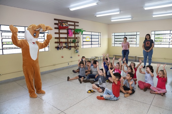 Com a presença do coelhinho da Páscoa, a equipe da Escola Municipal Professor Alberto Thomazi entregou nesta quinta-feira, dia 14/04, ovos de chocolate a todos os alunos para celebrar a data, que é comemorada anualmente entre os meses de março e abril.