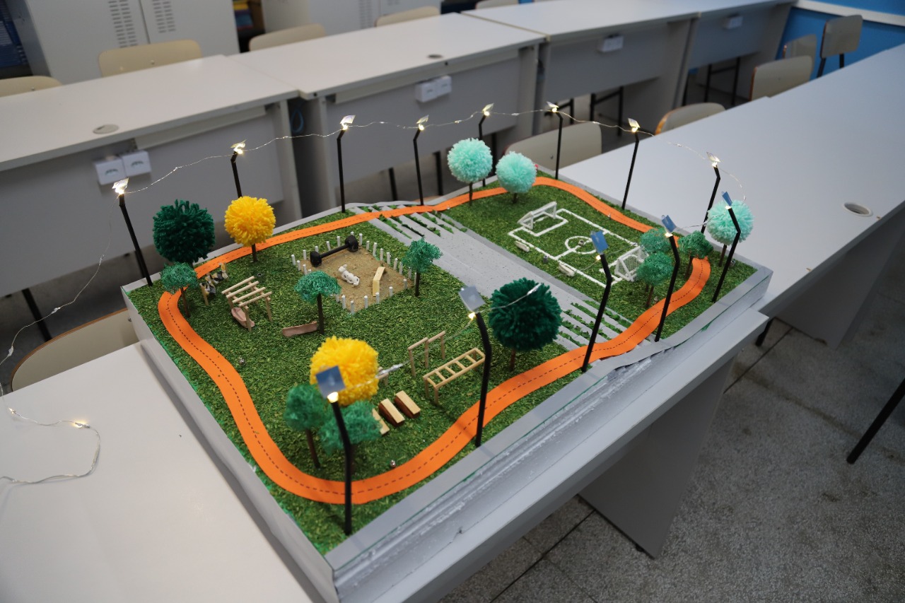 Maquete do projeto vencedor, denominado Super Arquitetos do Lazer em Defesa da Sustentabilidade.