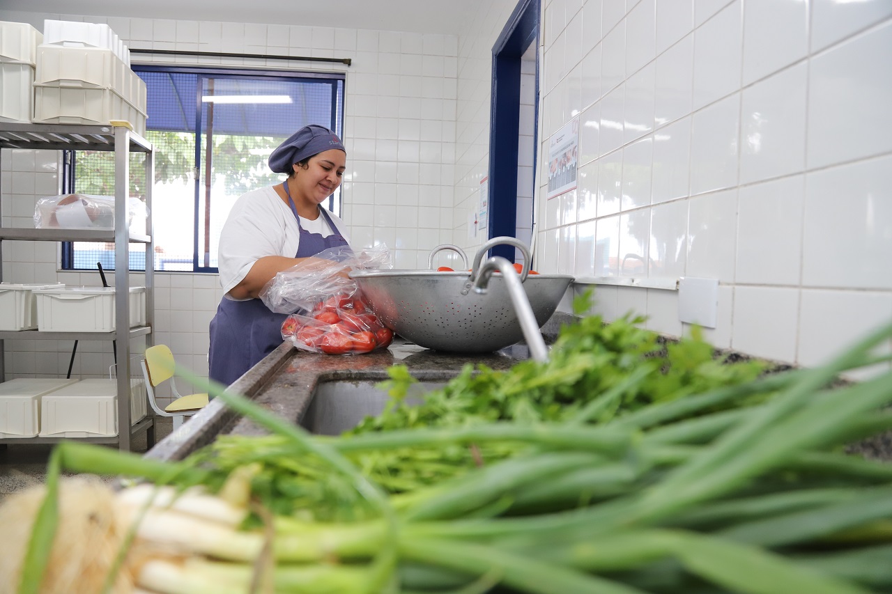 Merendeiras já organizam as cozinhas e os insumos para garantir um alimento de qualidade aos alunos.